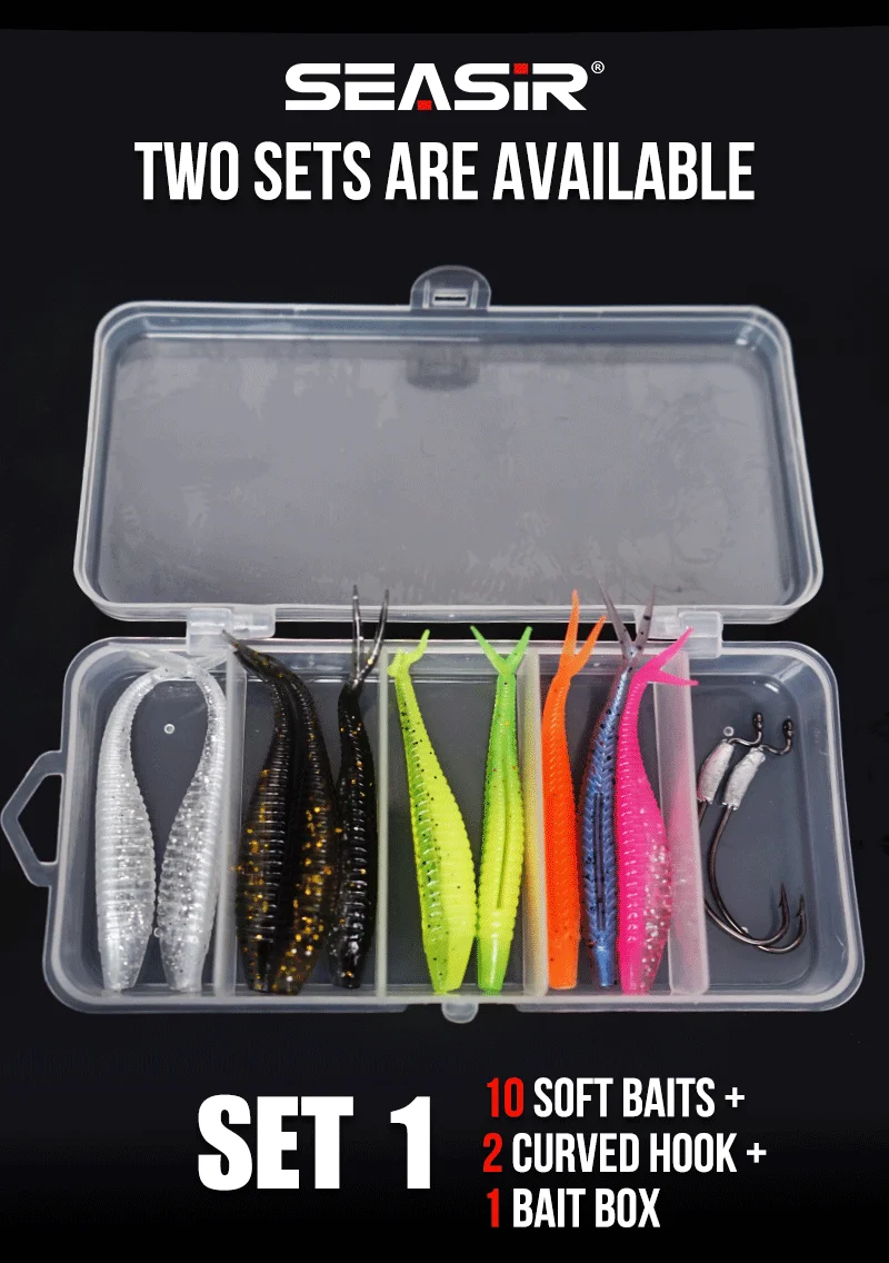 Set 1:10 cebos de señuelo suave + 2 anzuelos curvos + 1 caja de cebo