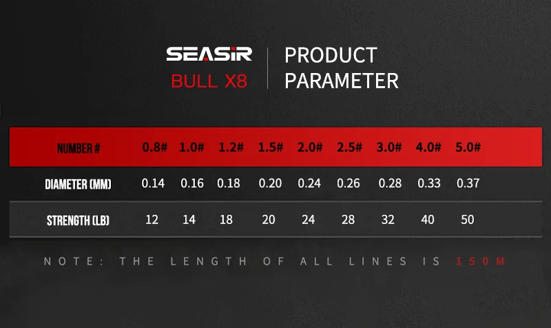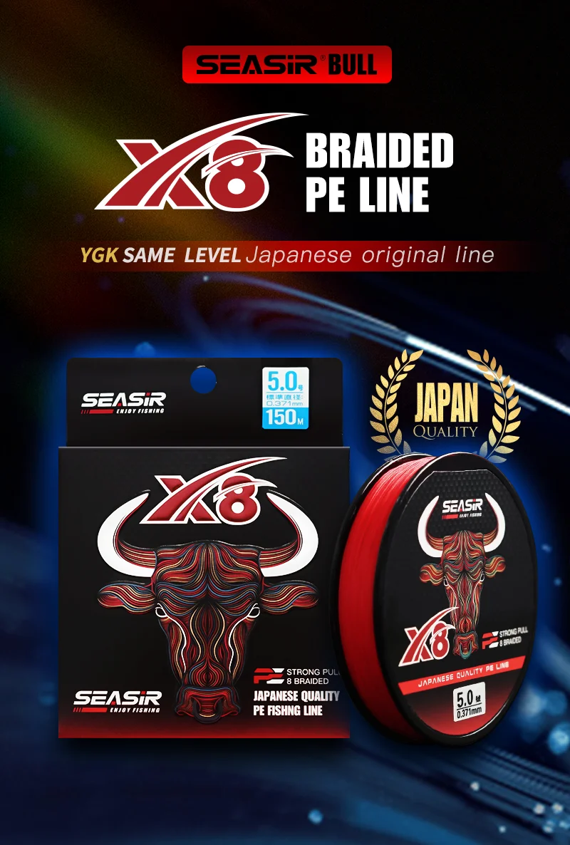 SEASIR RED Línea de PE de 8 hebras Calidad japonesa 8 Línea de pesca multifilamento trenzado 150 metros 12-50LB Línea principal de alta resistencia mejorada