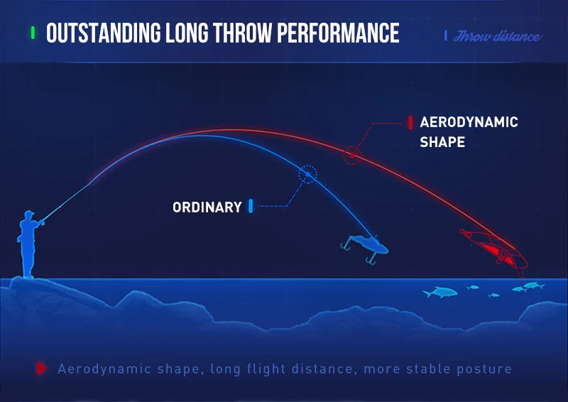 La forma del cebo está cuidadosamente diseñada. La distancia de lanzamiento es más larga y la postura es más estable.