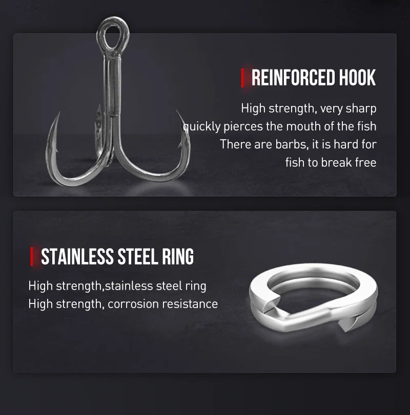 Alta resistencia, muy afilado perfora rápidamente la boca del pez. Hay púas, es difícil que los peces se liberen.