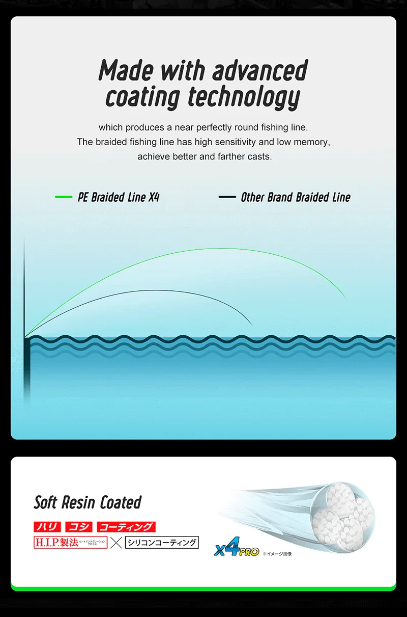 2. It is made with advanced coating technology, which produces a near perfectly round fishing line. The braided fishing line has high sensitivity and low memory, achieve better and further casts.