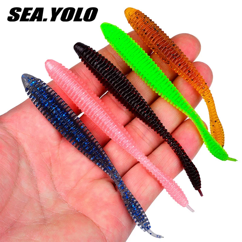 Sea.Yolo 10 Uds señuelo de Pesca 10cm 3g cebo suave de silicona trucha gusano Wobblers Swimbait cebos artificiales carpa lubina aparejos de Pesca