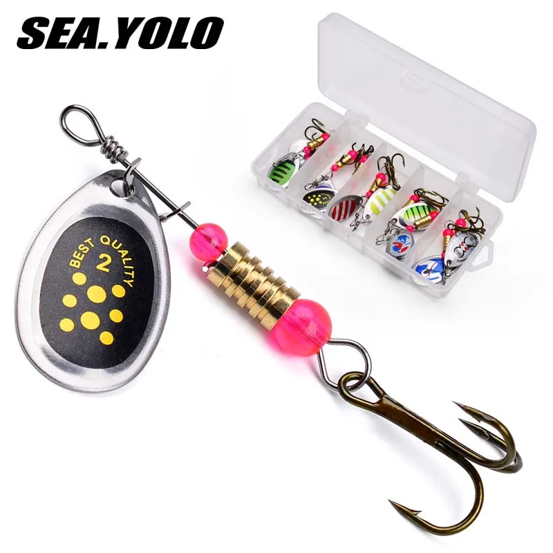 Sea.Yolo 10 unids/set Spin Metal Jig señuelo de pesca con anzuelo 6 cm/3,2g cebo Artificial lentejuelas de Metal conjunto accesorios de equipo de pesca