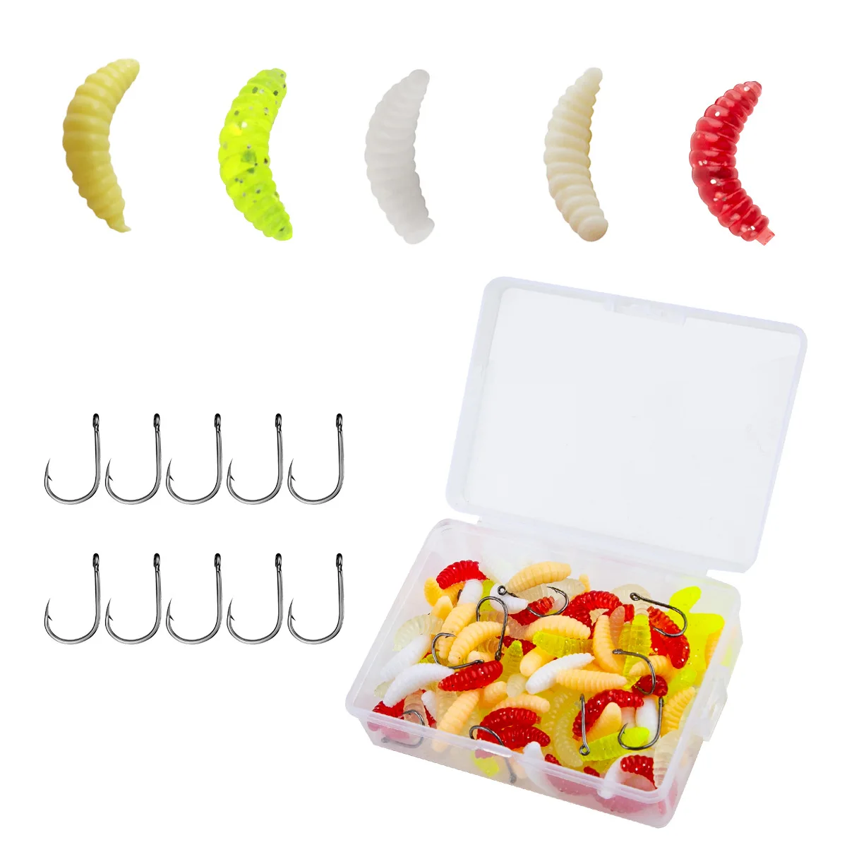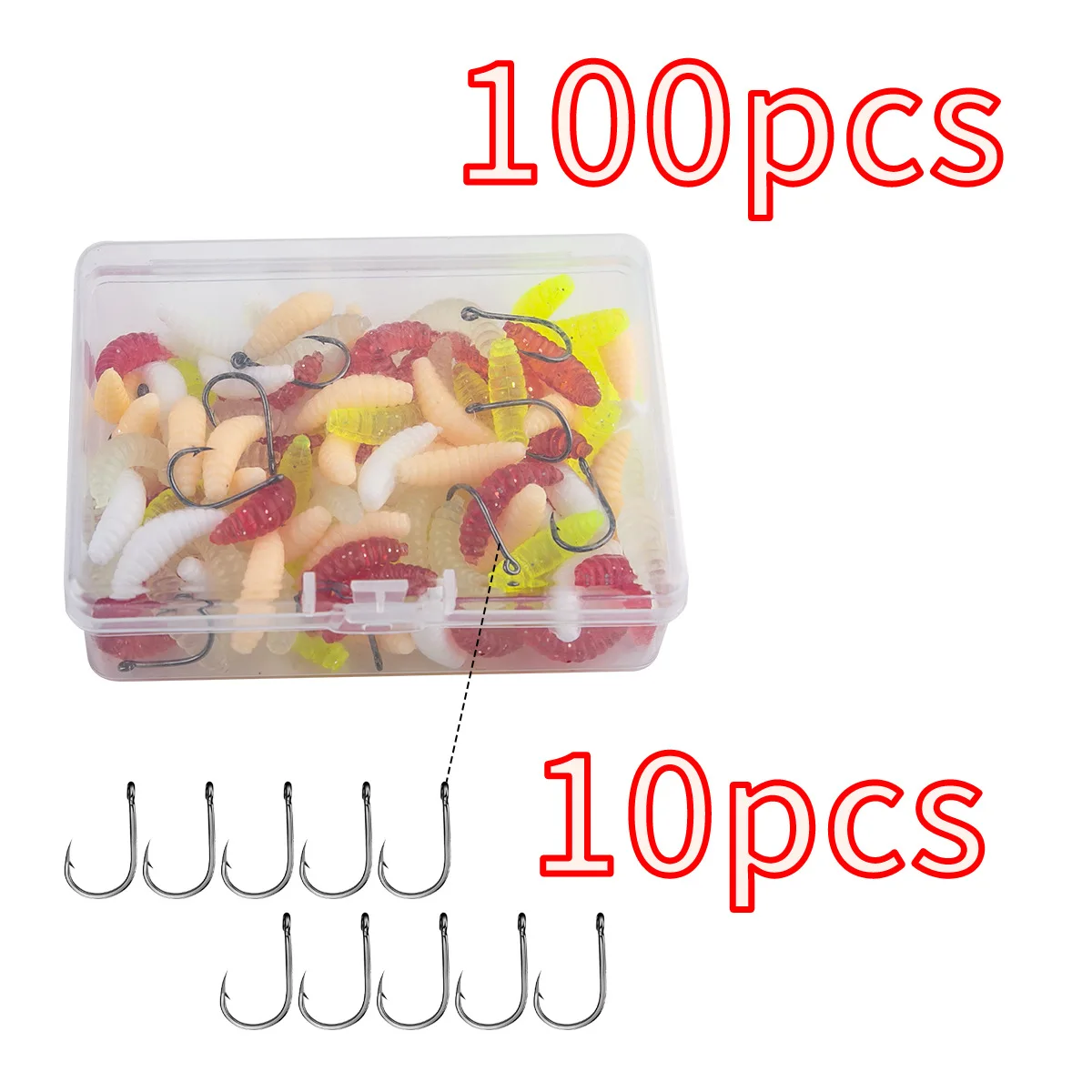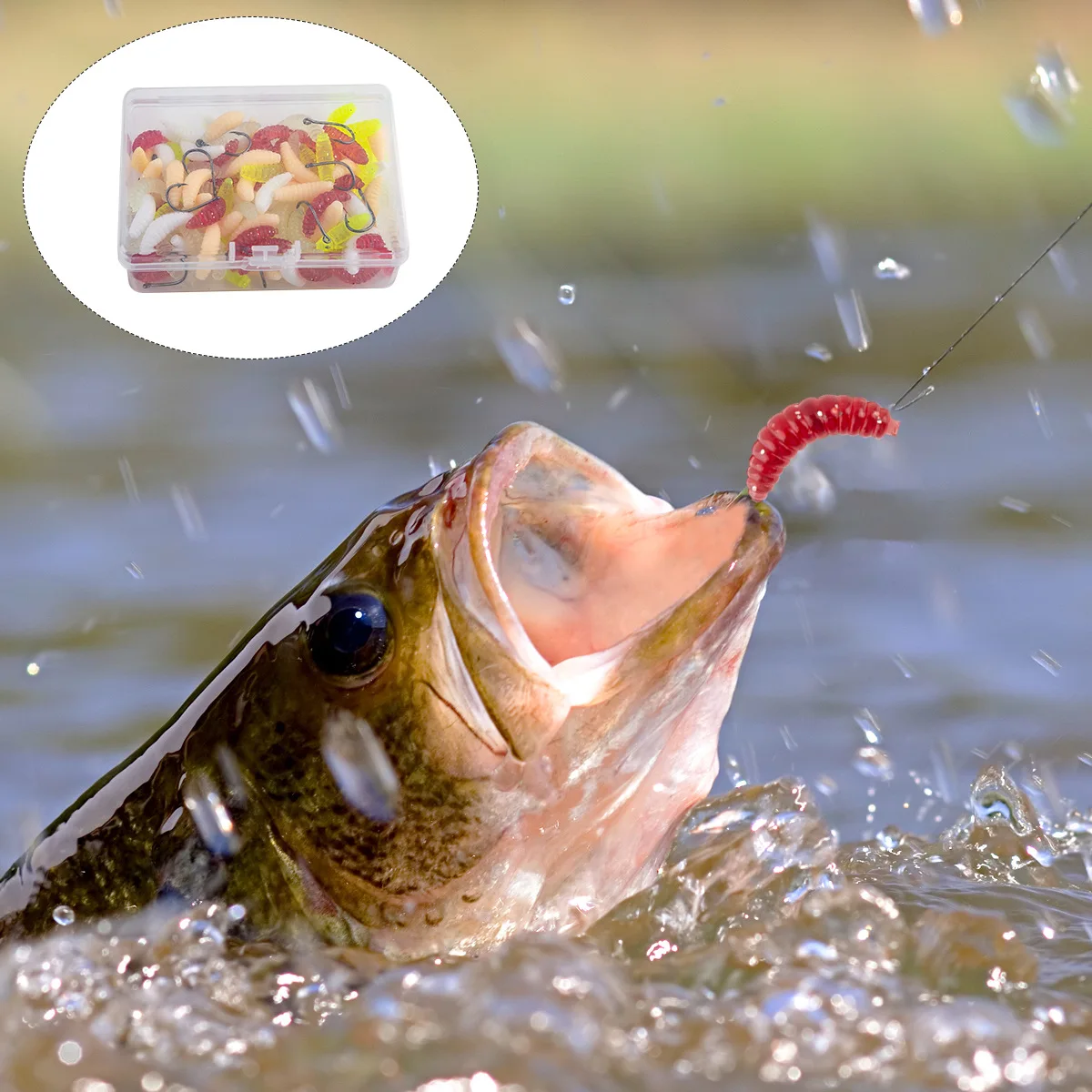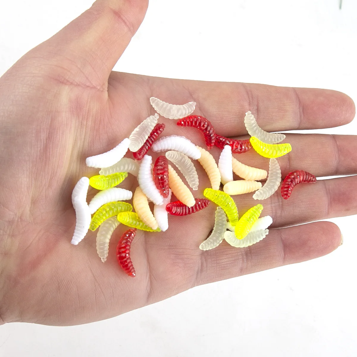 SeaYolo 100 Uds gusano realista gusano para pesca mosca insecto señuelos larva cebo suave señuelo de pesca cebo Artificial de silicona