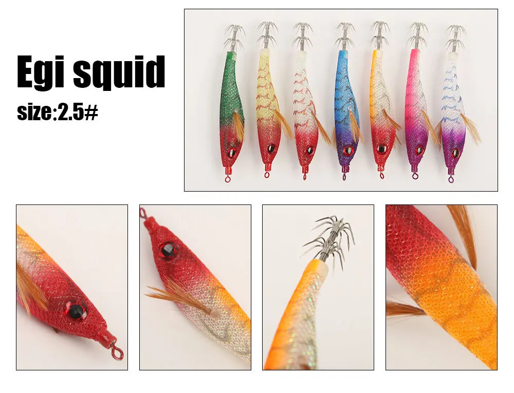 SeaYolo 10cm/6,5g 2,5 # Señuelo de pesca de camarones Horizontal, anzuelo de calamar Artificial, señuelos de camarones de madera luminosos, plantilla de sepia