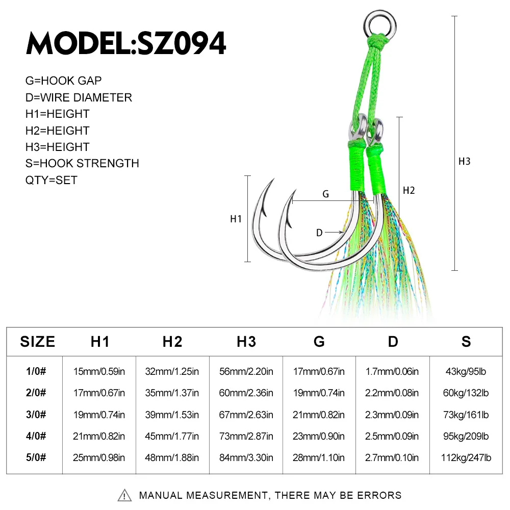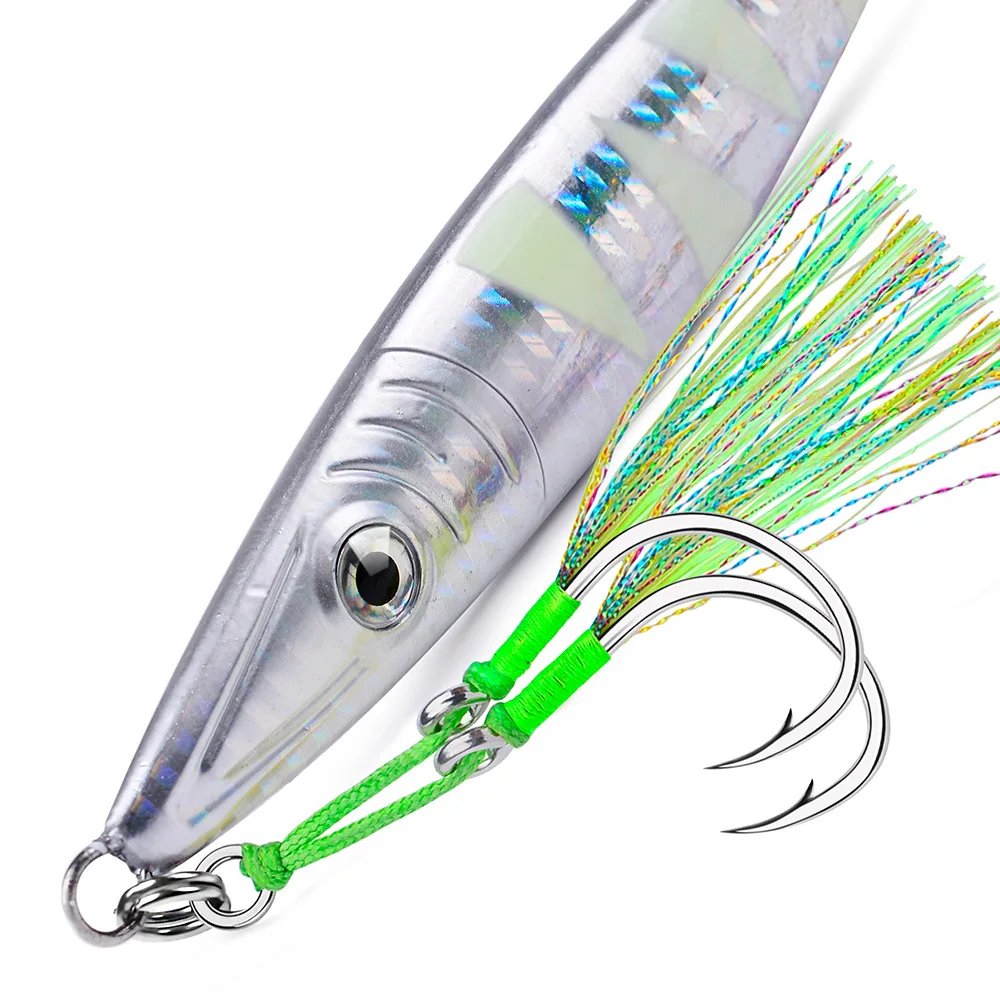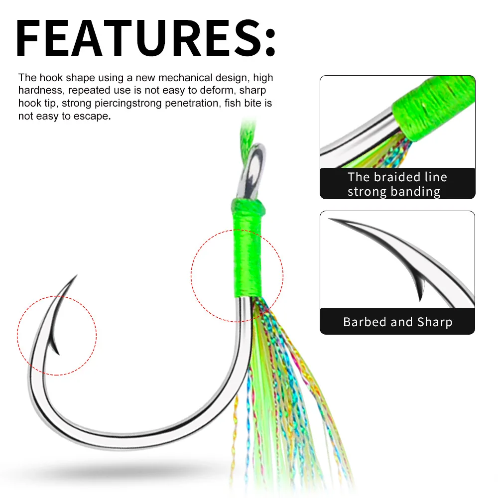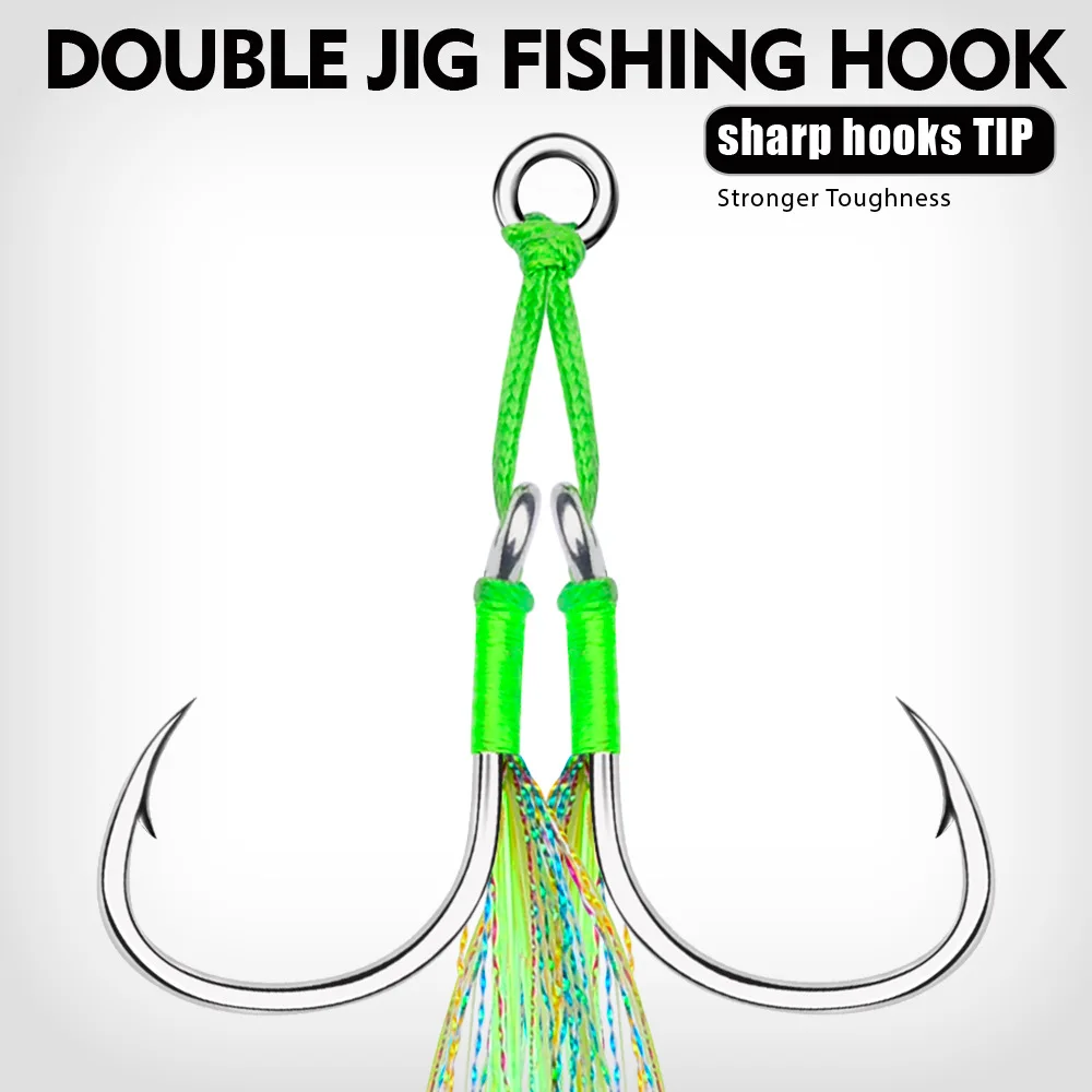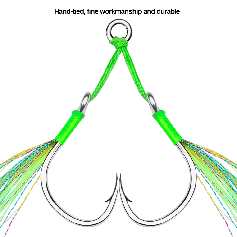 Sea.Yolo 2 par/pack anzuelos de pesca placa de acero alto en carbono anzuelos dobles accesorios de equipo de pesca de mar atados con seda brillante