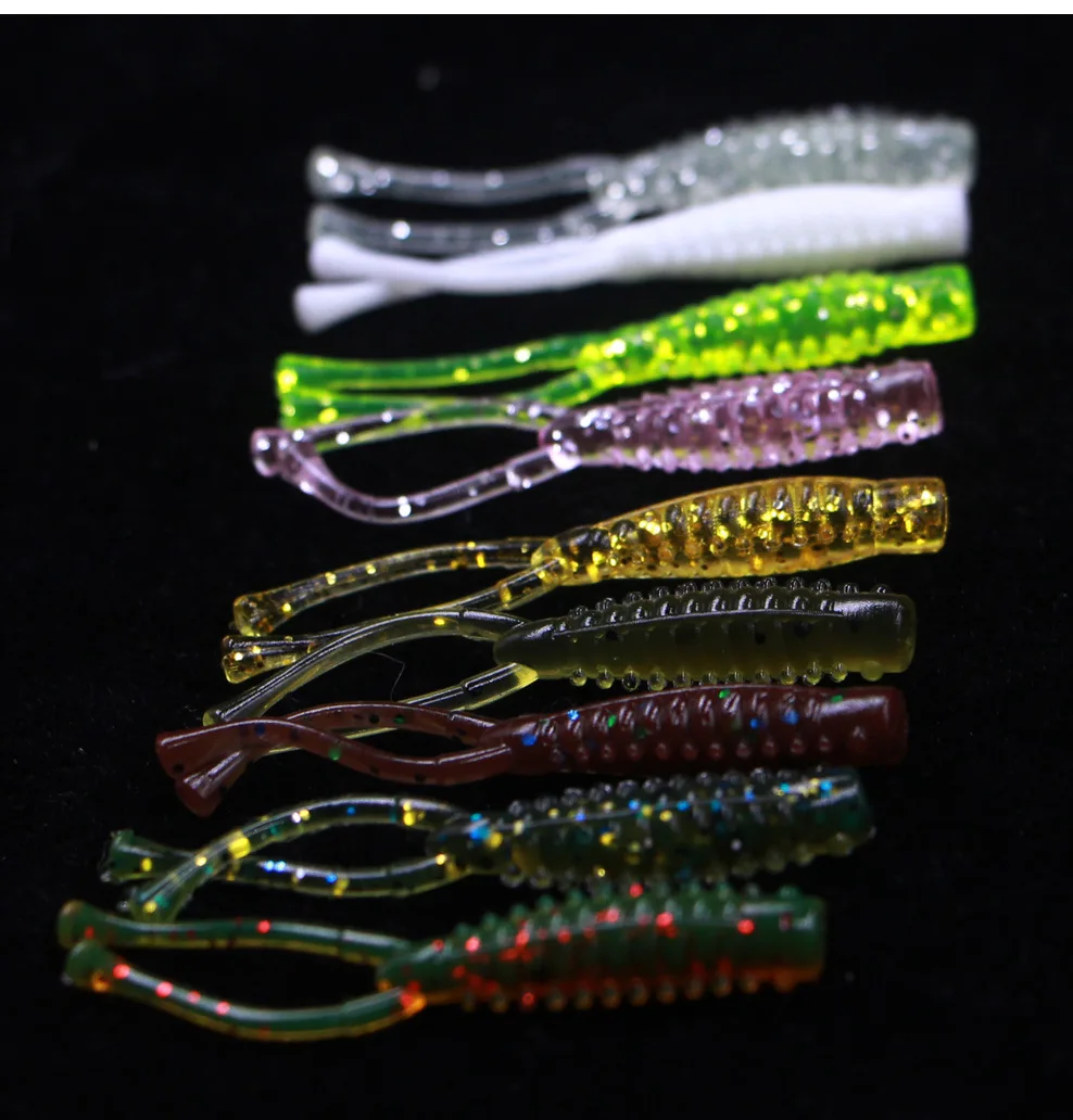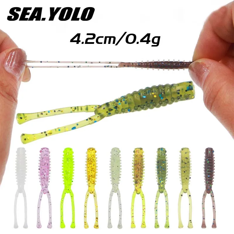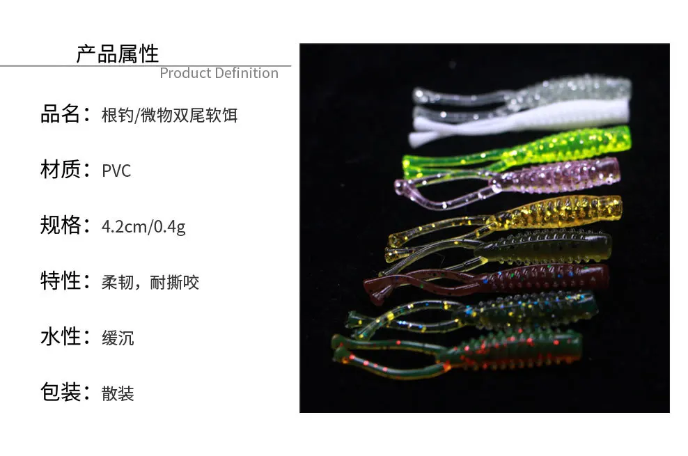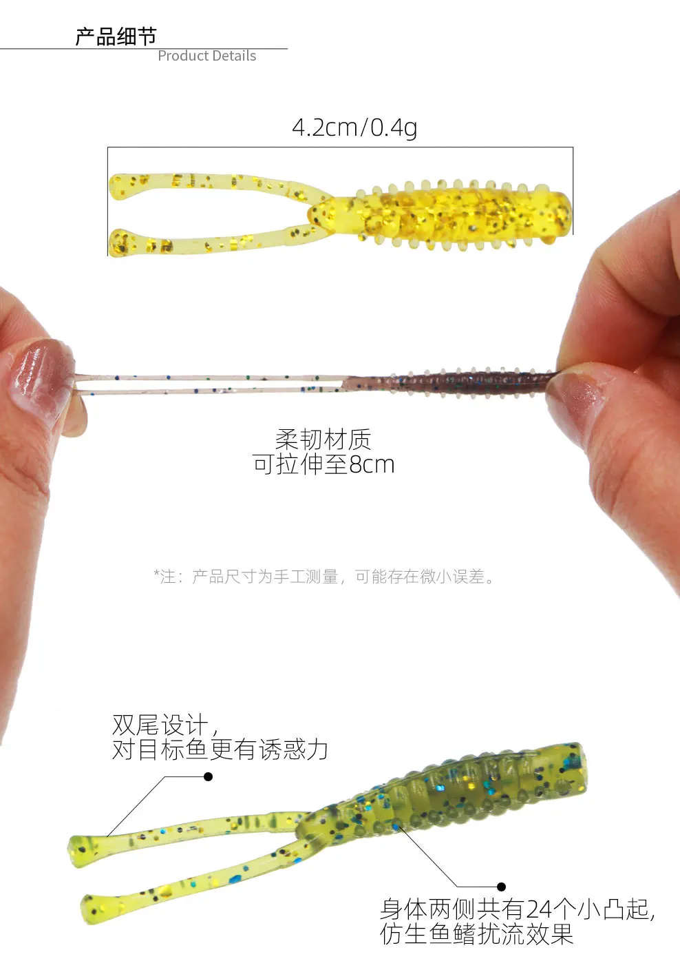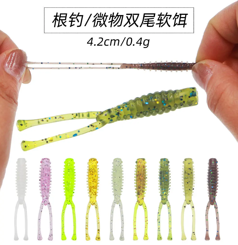Sea.Yolo 4,2 cm/0,4g 10 unids/pack señuelo de pesca cebo suave de doble cola Micro cebo de pesca de raíz biomimético