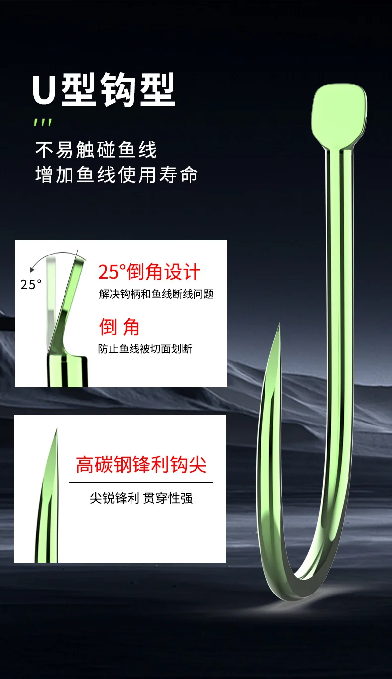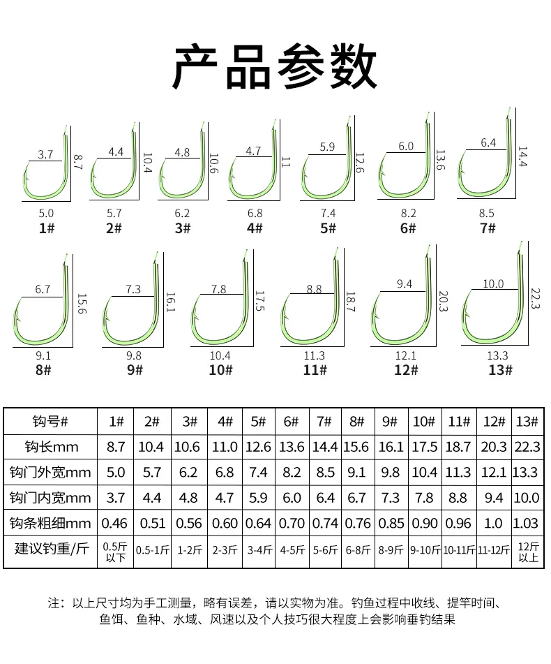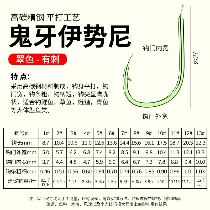 Sea.Yolo 50 unids/caja ISEAMA anzuelos de pesca de acero con alto contenido de carbono verde accesorios de pesca de carpa 1 # -13 # Anzuelo de púas rojo de Japón