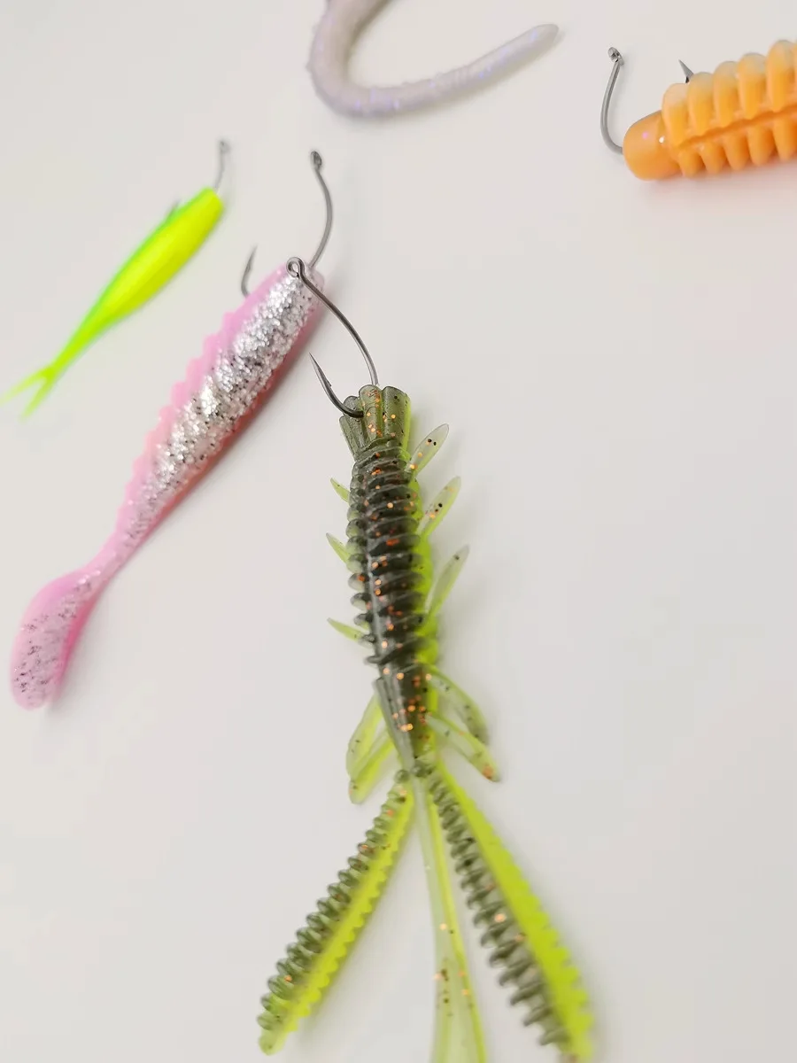 Sea.Yolo 50 unids/pack anzuelo de pesca de acero rico en carbono anzuelo de púas Loach cebo suave anzuelo de gusano suave accesorios de pesca