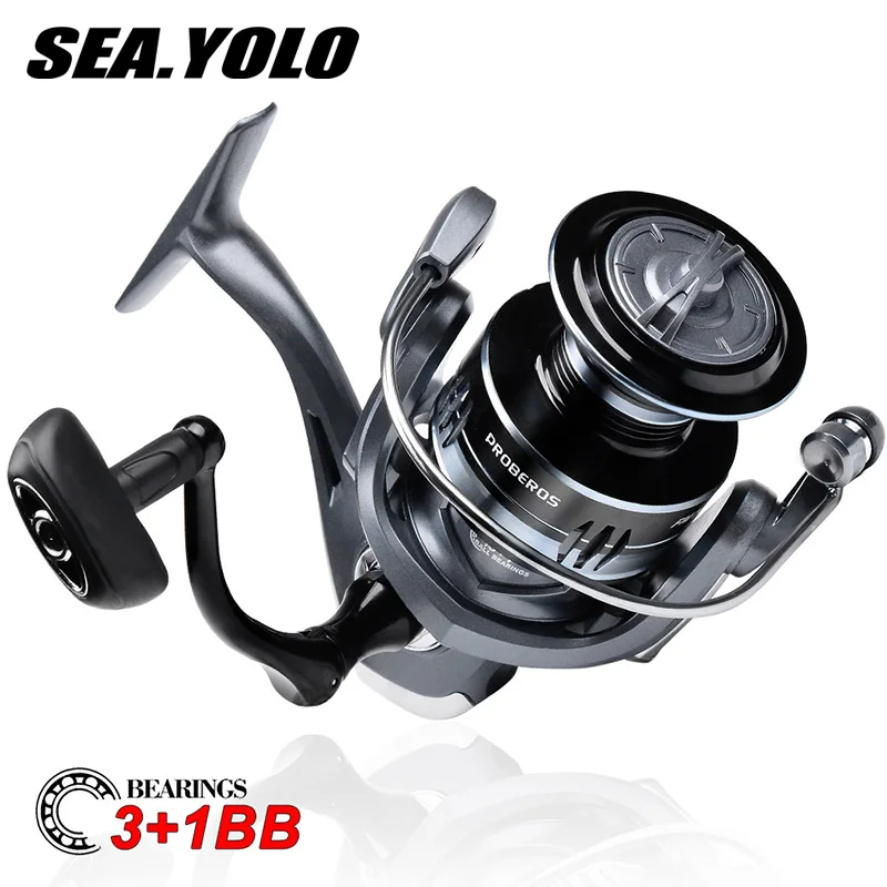 SeaYolo 5,2: 1 pendientes de engranaje Ultra suave y resistente sistema de embrague unidireccional carrete de pesca giratorio espacio cero para pesca en el mar