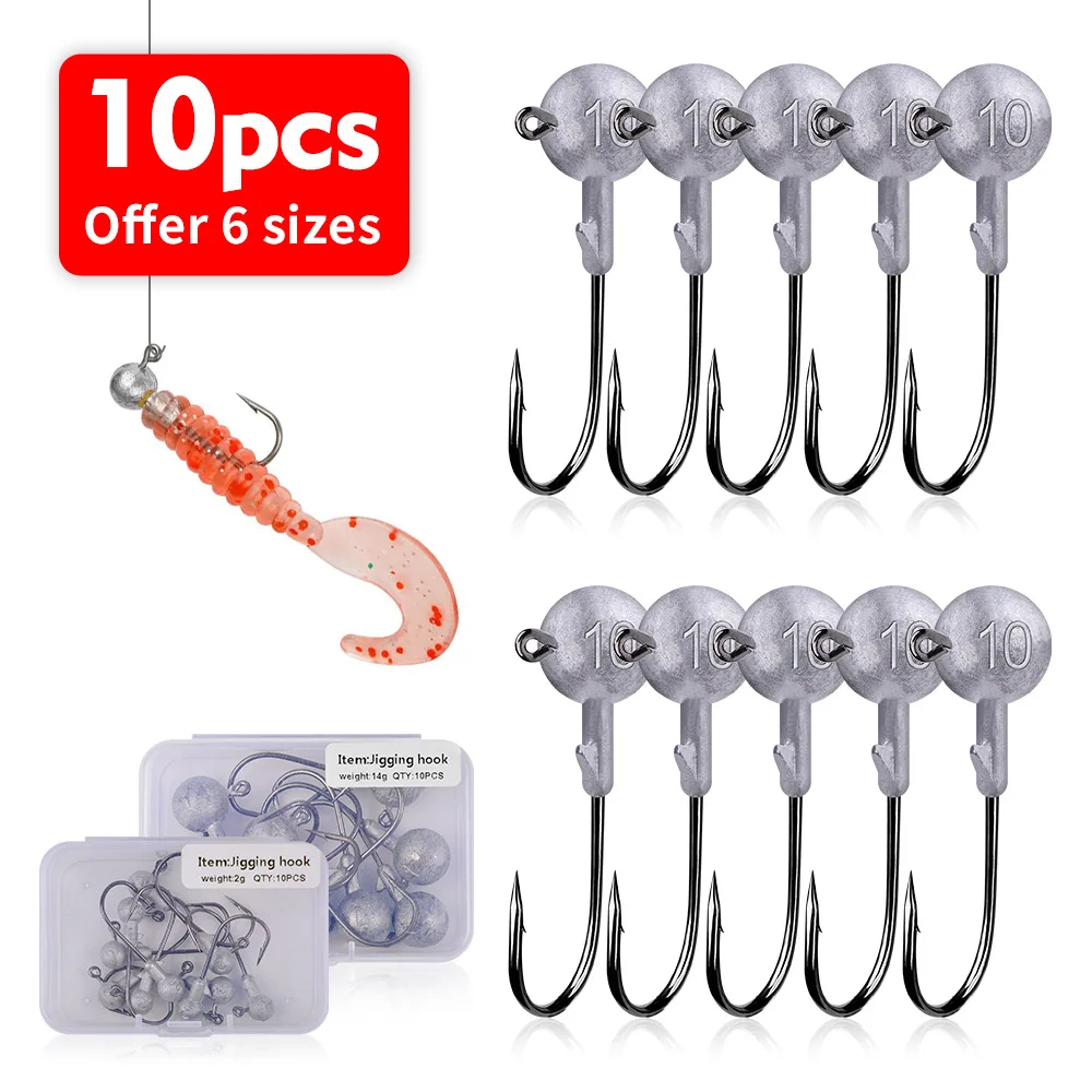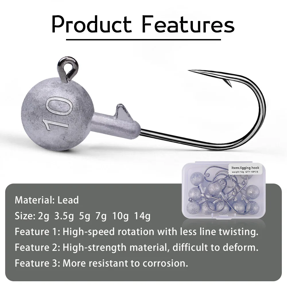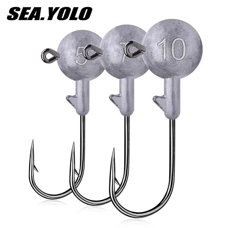 Sea.Yolo-anzuelo de pesca de 2g, 3,5g, 5g, 7g, 10g, 14g, con cabeza de plomo, con púas, para pesca en roca oceánica, 10 unids/lote por paquete