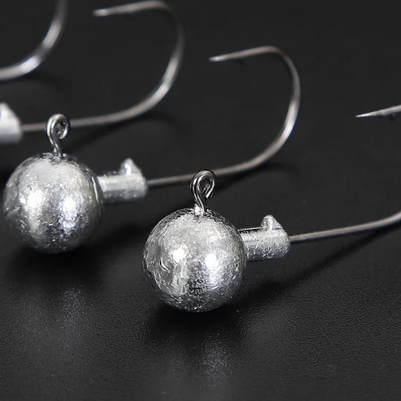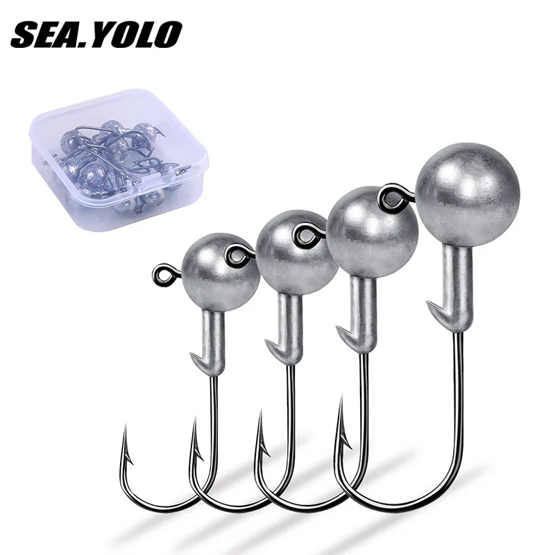SeaYolo-anzuelo de pesca con cabezales de anzuelo, 1,5g-10g, 10 Uds., bola redonda de vástago largo, acero rico en carbono, largo para señuelo suave, accesorios de gusano