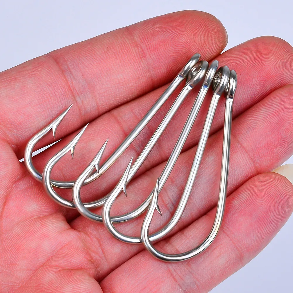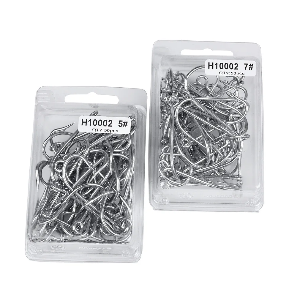 Sea.Yolo-anzuelos de pesca de acero de alto carbono, gancho de púas de mango largo, accesorios de aparejos de pesca de carpa, 50 unids/lote por paquete