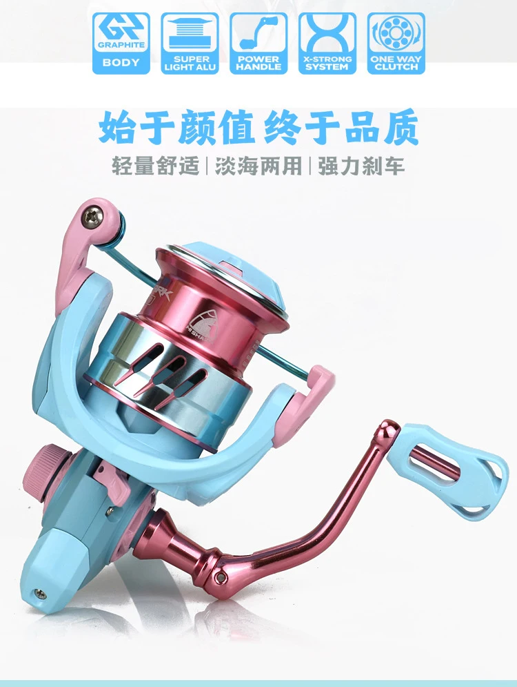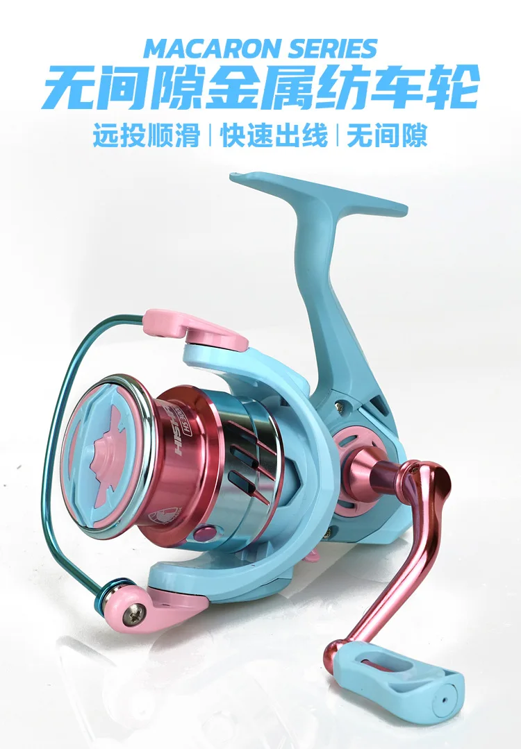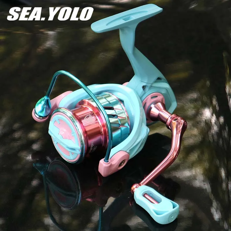 Sea.Yolo-carrete de pesca azul, rueda giratoria sin huecos, Macaron Metal 4,9: 1, relación de alta velocidad 5,2: 1, rueda de caña de mar lejano