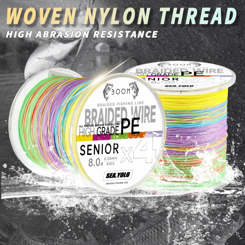 Sea.Yolo-sedal de pesca trenzado de 4 hebras, 300M, PE, 8-90LB, multifilamento, pesca de carpa suave para pesca en el mar