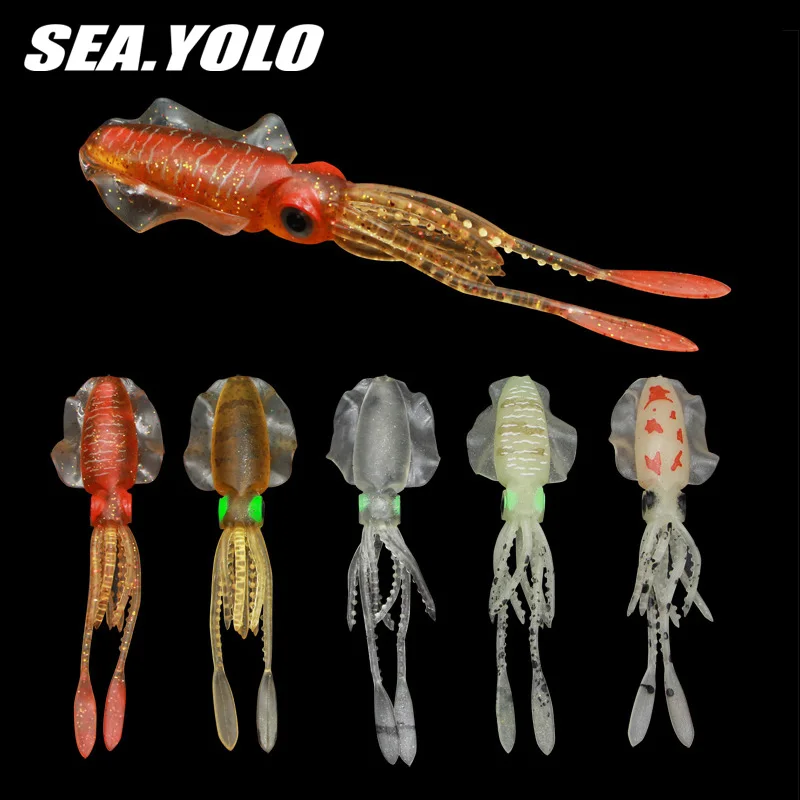 SeaYolo-señuelo de calamar suave luminoso/UV, plantilla de calamar, Señuelos de Pesca para pesca en el mar, cebo Wobbler de 6,5/9,5/12/15cm