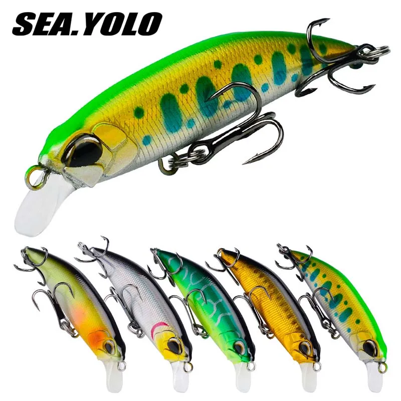 Sea.Yolo-señuelo de pececillo que se hunde, cebo de pesca de plástico de 5cm/3,8g, 7cm/8g, cebo duro de carpa, pesca en lago con dos anzuelos triples, 1 unidad