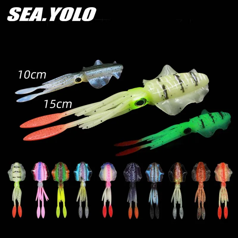 Sea.Yolo-señuelo de pesca de 10cm/6,8g, cebo suave de calamar luminoso, pulpo de orejas grandes, cebo Artificial falso, pesca en el mar