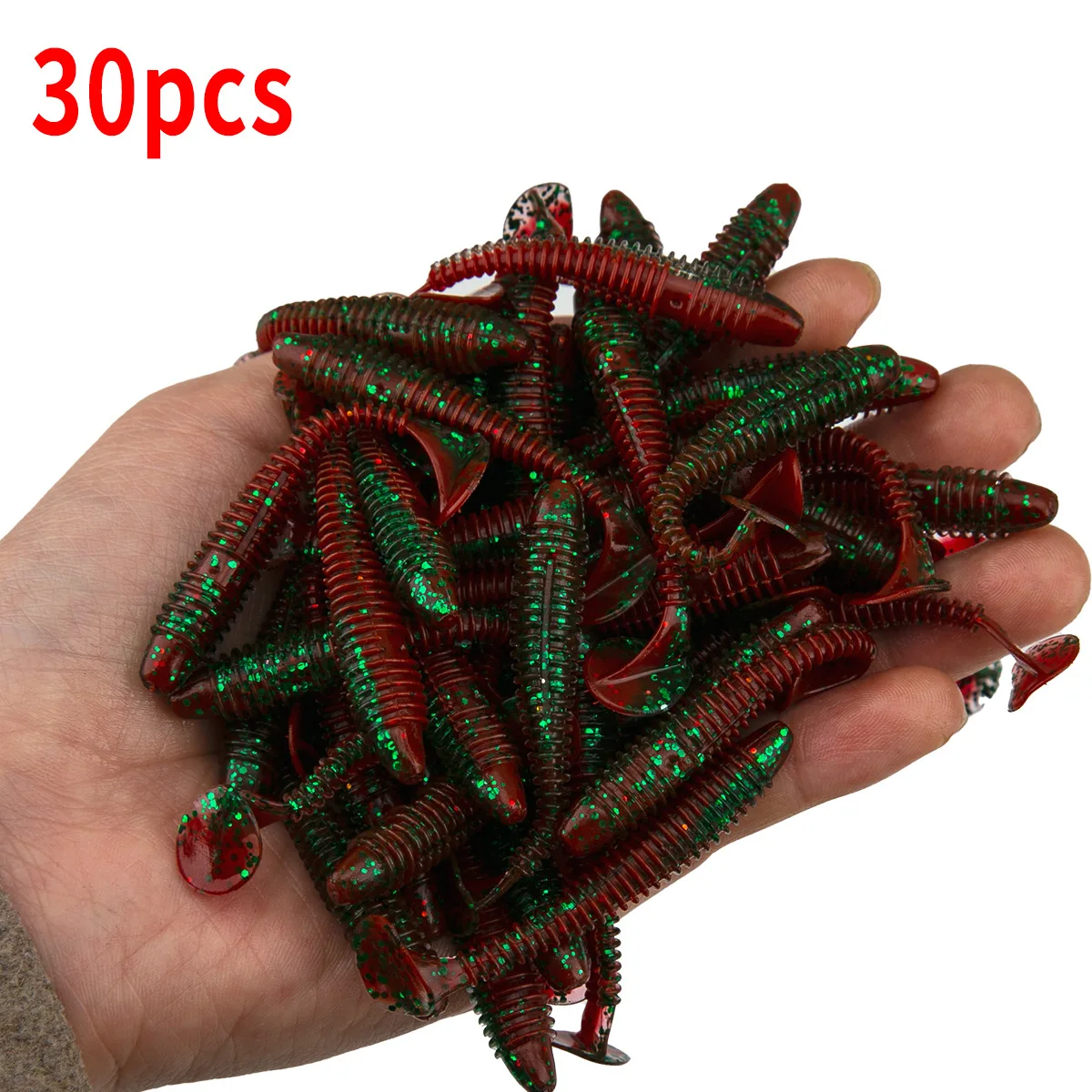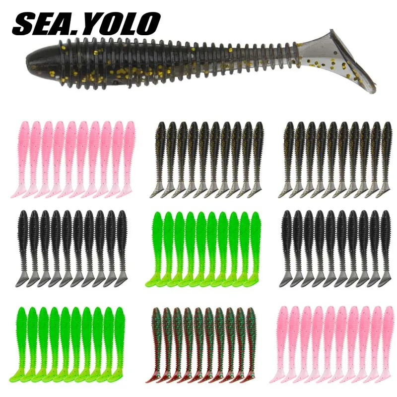 Sea.Yolo-señuelo de pesca en espiral, cebo Biónico de cola en T, Artificial, suave, 5,5 cm/1,3g, 30 unidades por paquete