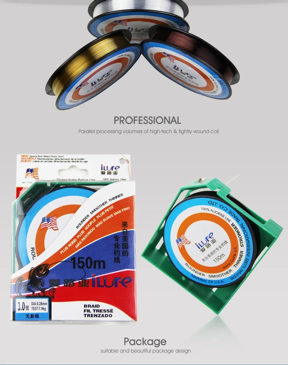 3. Material: La línea de fluorocarbono está hecha de núcleo de nylon de alta calidad con revestimiento de carbono.