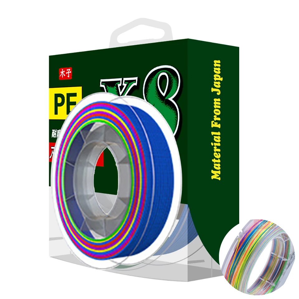Línea de PE de 8 hebras, material de Japón, construcción trenzada única, hecha de fibras de PE de ultra alta resistencia.