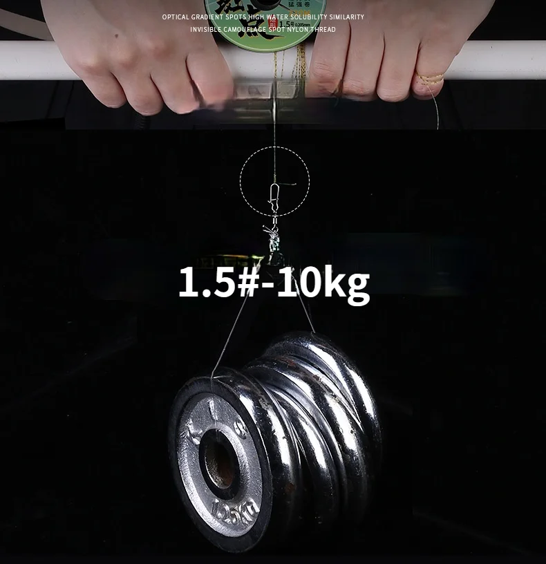2. El fluorocarbono bajo VISIBILE es el material menos visible cuando se sumerge en agua. La combinación de los dos materiales maximiza la ventaja de la invisibilidad del fluorocarbono con la baja memoria.