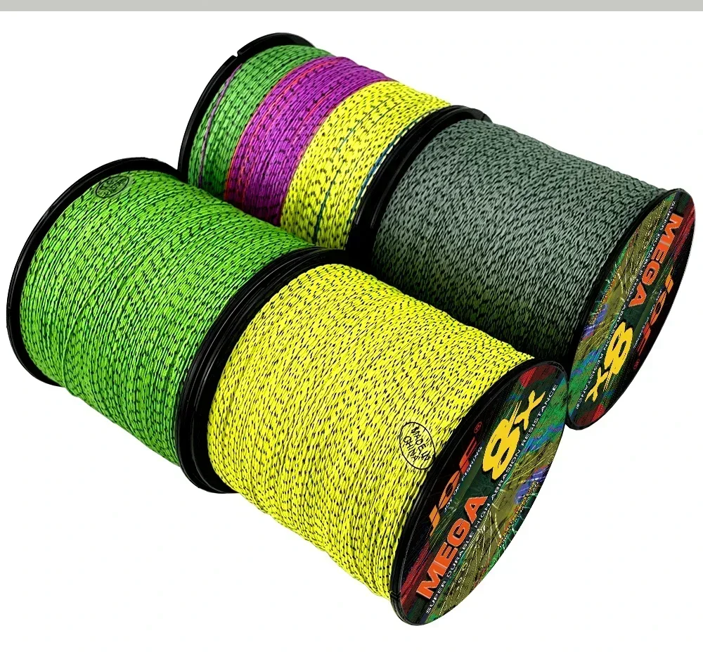 Línea de PE de 8 hilos, material de Japón, construcción trenzada única, hecha de fibras de PE de resistencia ultraalta