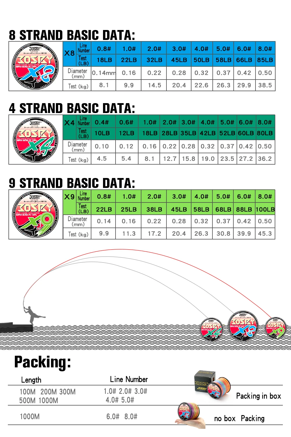 CaracterísticasMás suave, más duradero, más fuerte, más delgadoMás suave y más duradero Adecuado para salAgua/agua dulce.Durabilidad de resistencia al desgaste increíble.Memoria OW. Estiramiento cero.No es fácil de cortar.