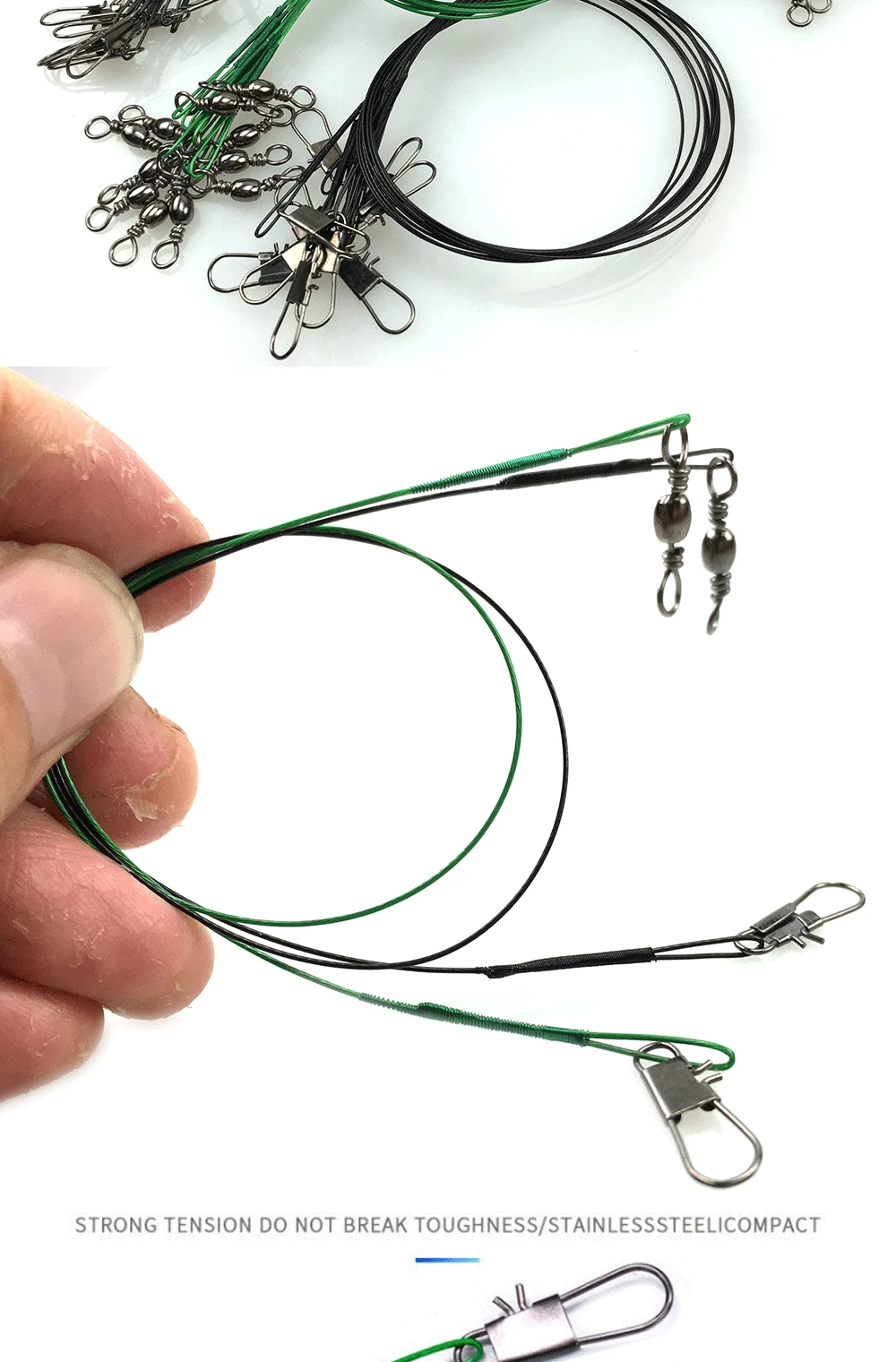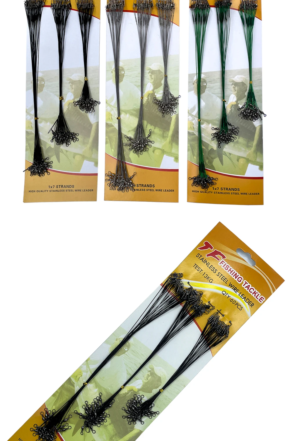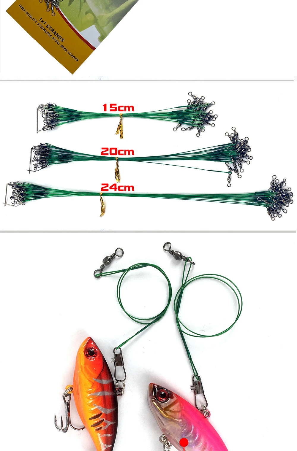 60 piezas, 15CM, 20CM, 25CM, hilo de pesca de acero antimordida, guía de alambre de acero con accesorio de pesca giratorio, correa de núcleo de plomo, alambre de pesca