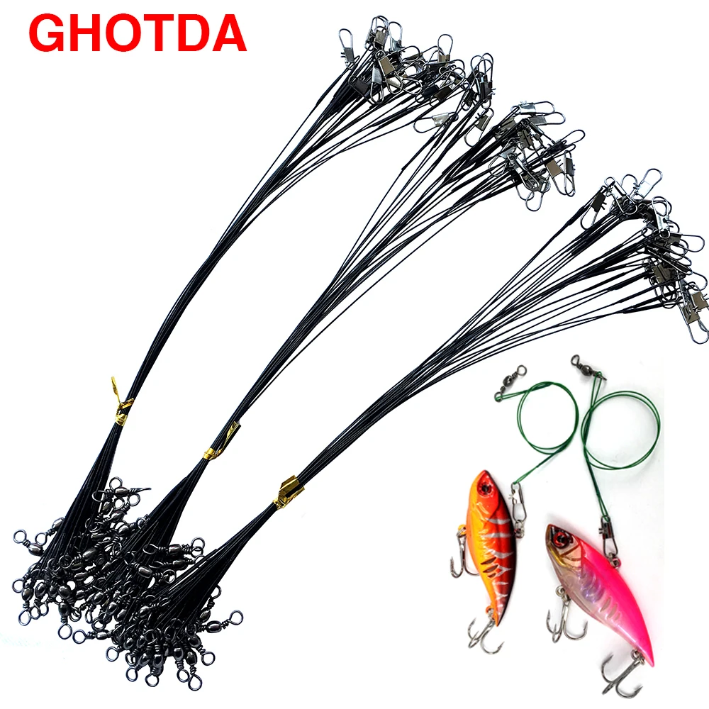 Línea Líder de Alambre de Acero, Accesorio de Pesca con Núcleo de Plomo, Correa Giratoria de 15/20/25cm, Anti Mordedura de 60 cm