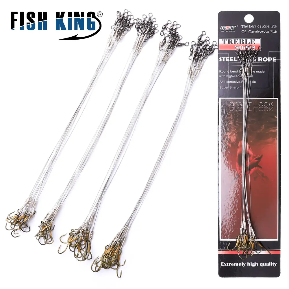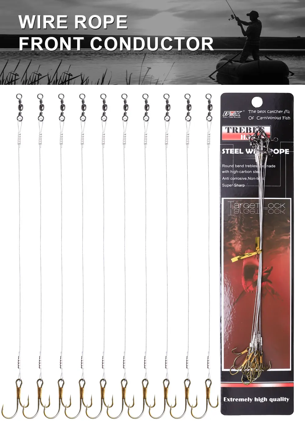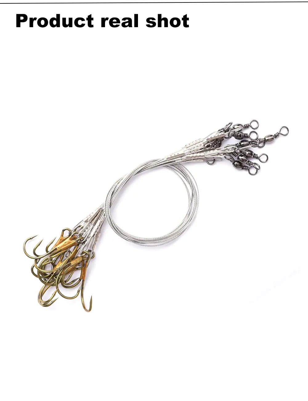 Sedal de pesca de alambre de acero antimordedura, 10 piezas, 20CM, correas de guía para pesca con señuelo de doble gancho, accesorios de pesca