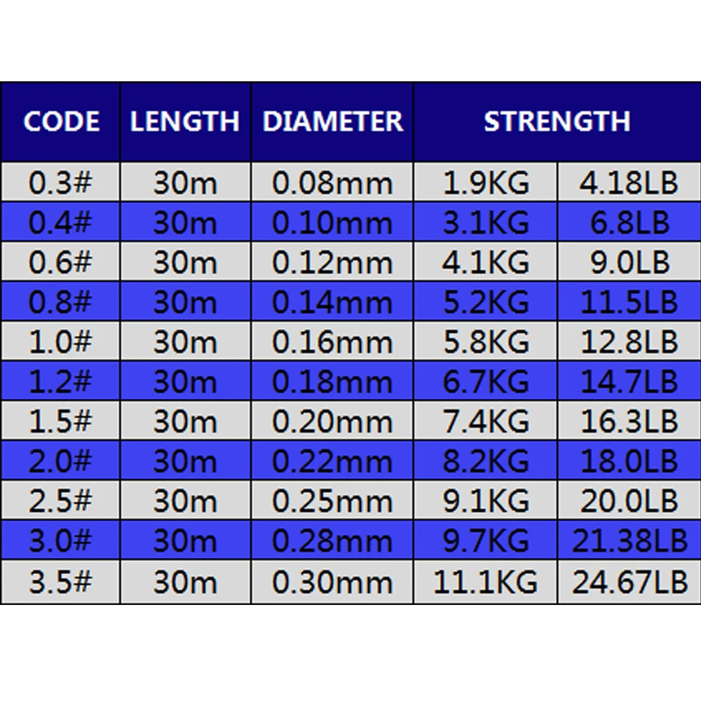Línea de pesca en hielo superfuerte de 30M, monofilamento de nailon, besugo de invierno, línea de pesca de agua salada, línea de carpa de baja memoria de Japón, 0,08-0,30mm