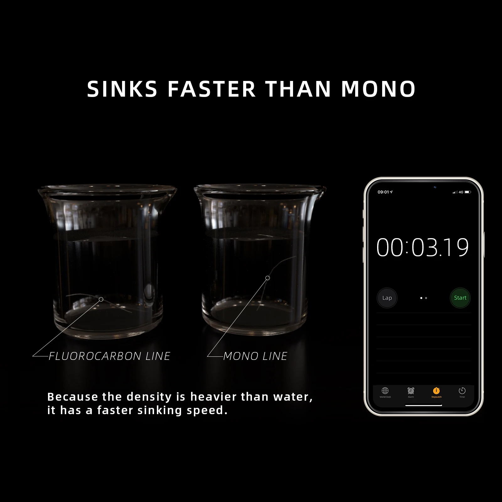 SF 100% material de líder de fluorocarbono puro línea de pesca prácticamente invisible resistente a los golpes mayor sensibilidad fregadero rápido claro