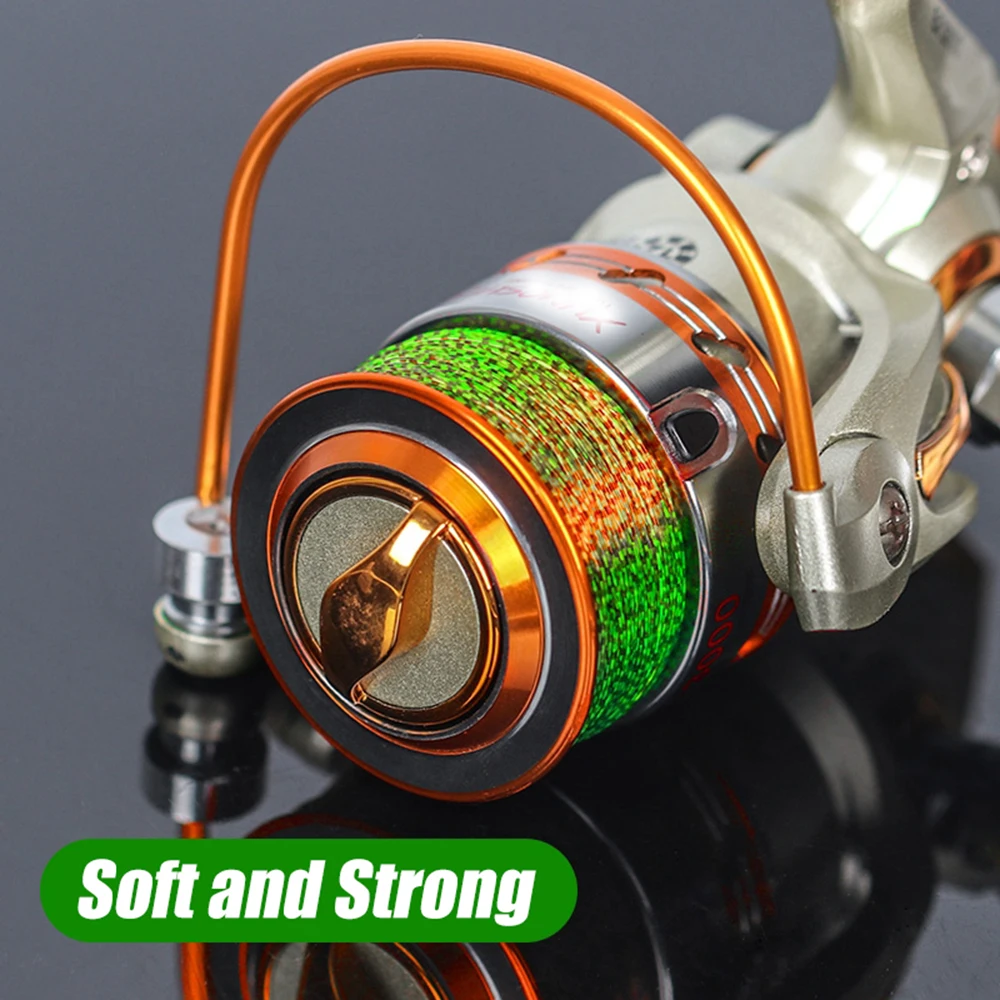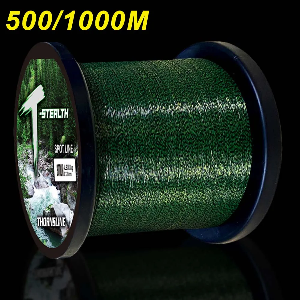 【Línea de pez manchada de decolor】Manchas de camuflaje biónico para una pesca más fácil. El color de la línea de pesca varía según el entorno, que es verde en fondo oscuro y marrón en fondo brillante.