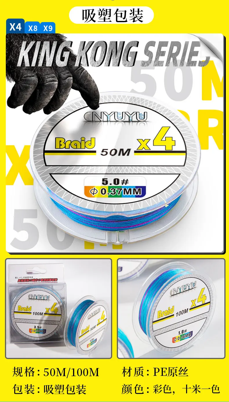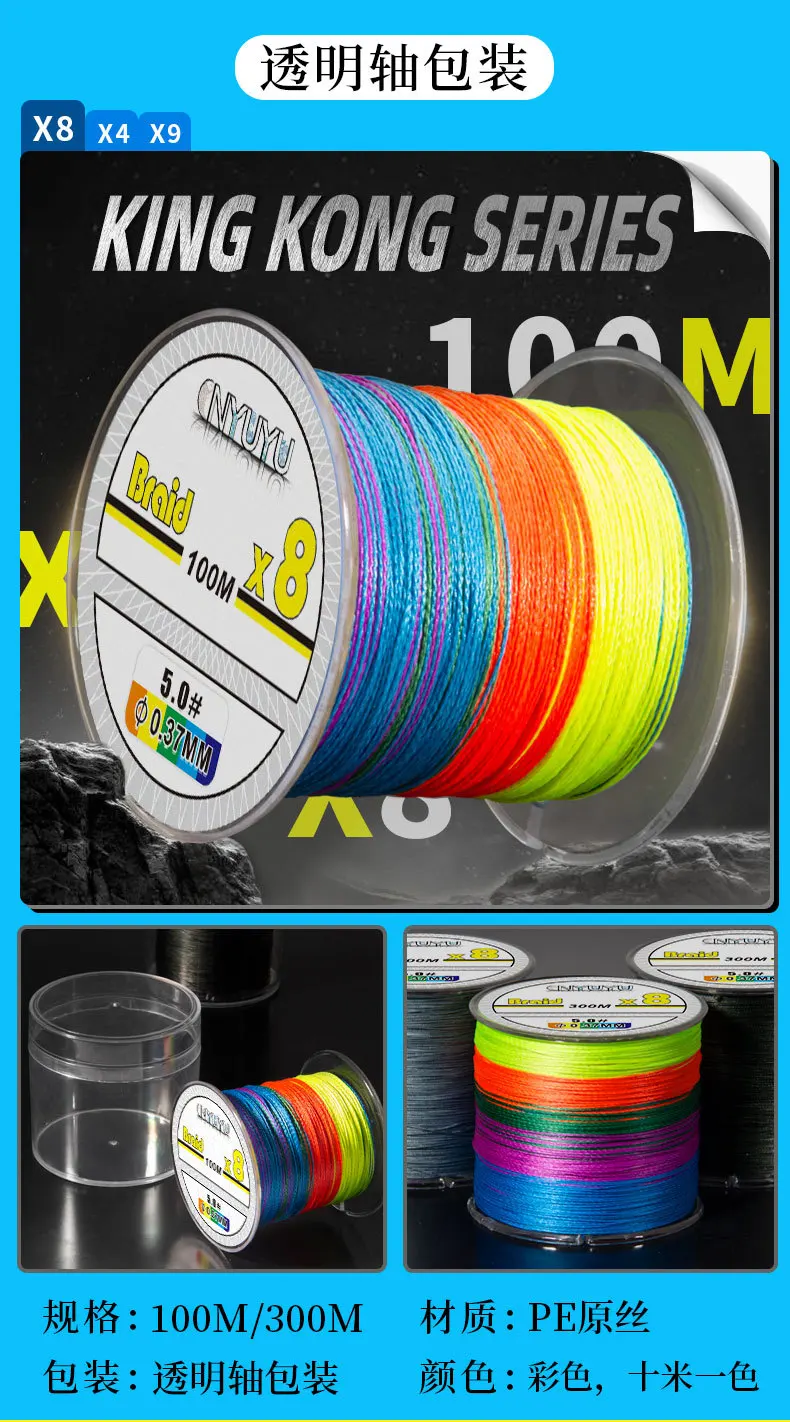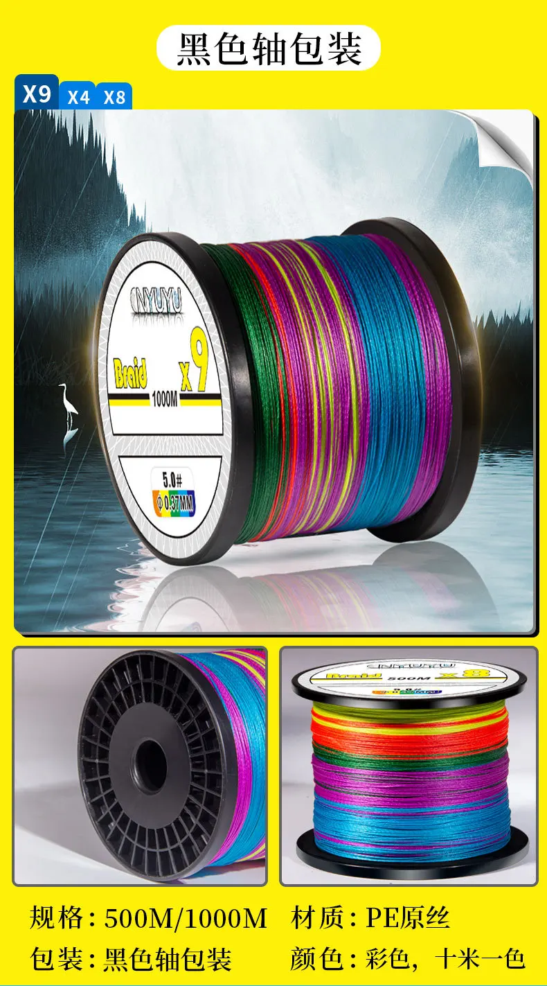 Sedal de pesca japonés B600, hilo trenzado de PE multicolor de 1000M, 500M, 300M, 100M, 9/8/4 hebras, 0,4 #-8,0 #