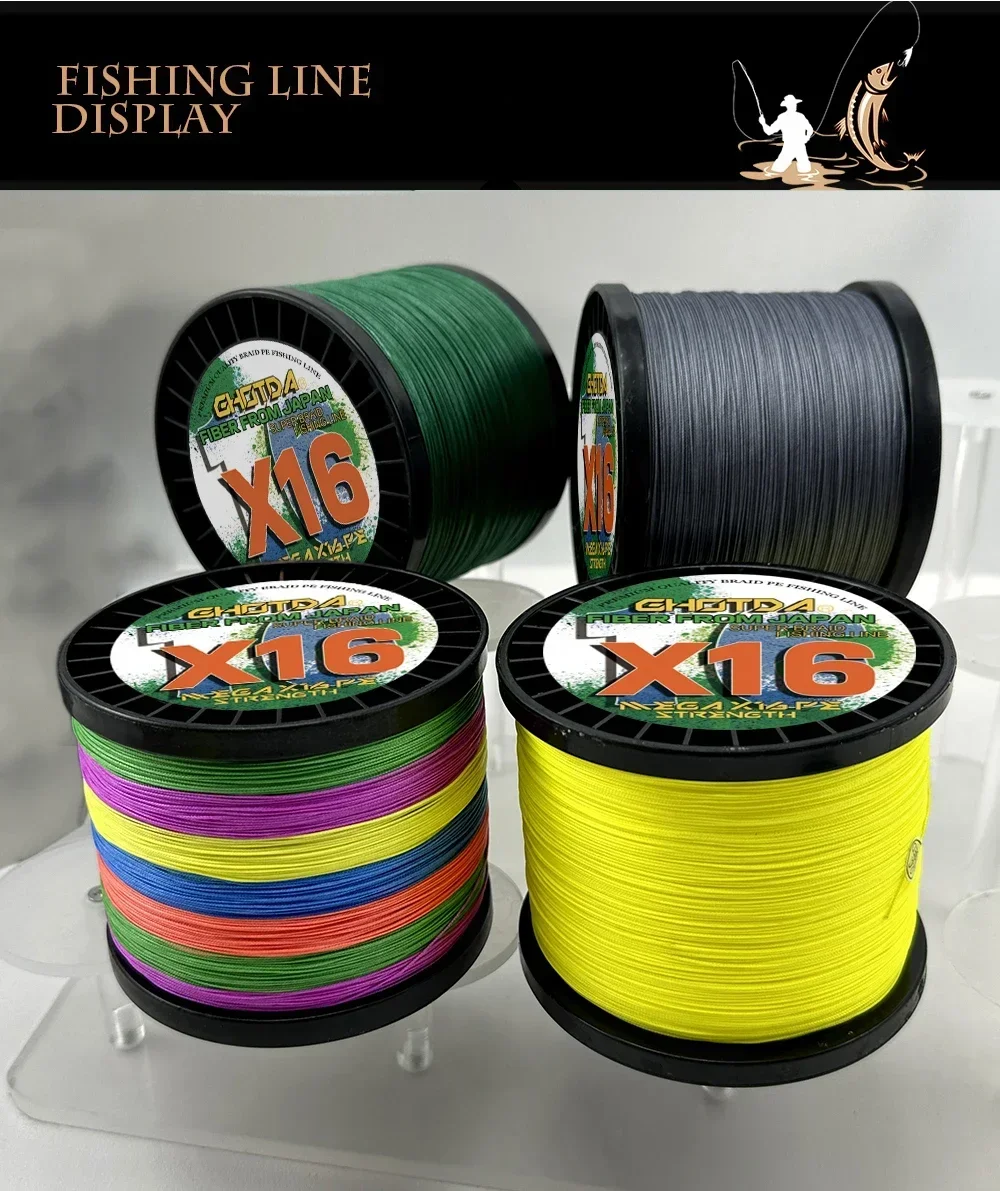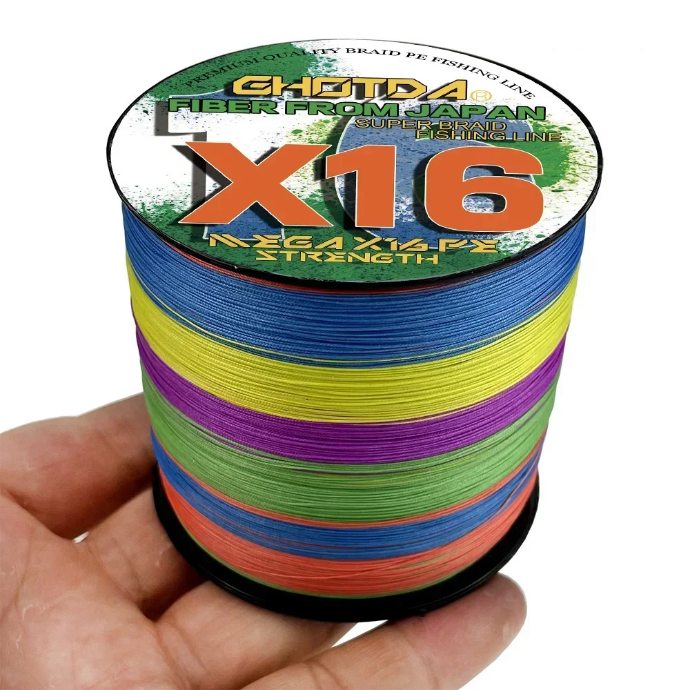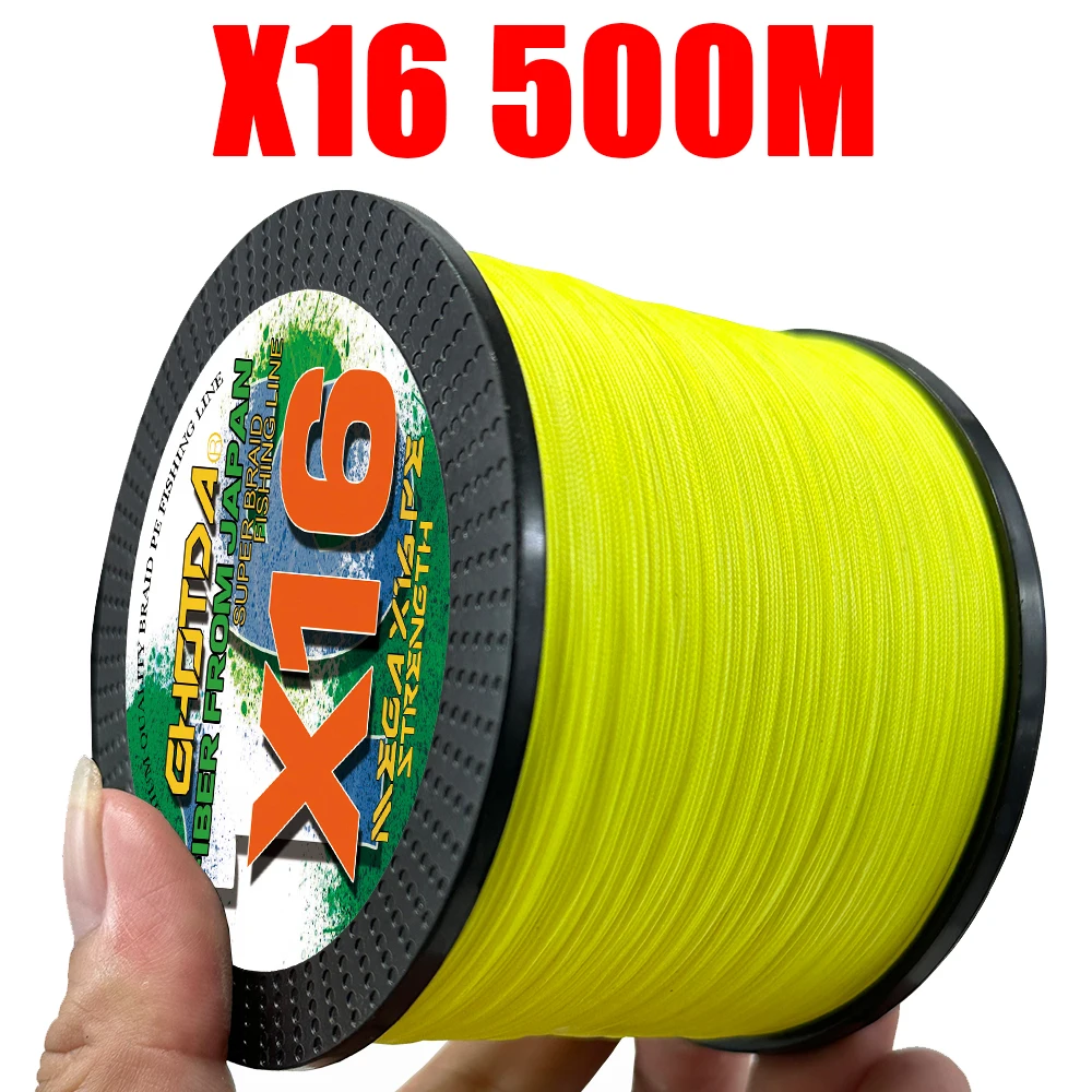 GHOTDA 16 hebras 500M Anti mordedura línea de pesca trenzada extremadamente fuerte 25LBs-200LBs 4 colores cables multifilamentoLa NUEVA línea de pesca trenzada de 16 hilos es la elección perfecta para los pescadores ávidos. Esta línea de pesca de alta resistencia, antimordeduras y resistente al desgaste está diseñada con la última tecnología de tejido para garantizar la máxima durabilidad y dureza. Con una mayor densidad y una mayor fuerza de tracción, esta línea proporciona un mejor rendimiento que las líneas tradicionales de 4, 8, 9 y 12 hilos.