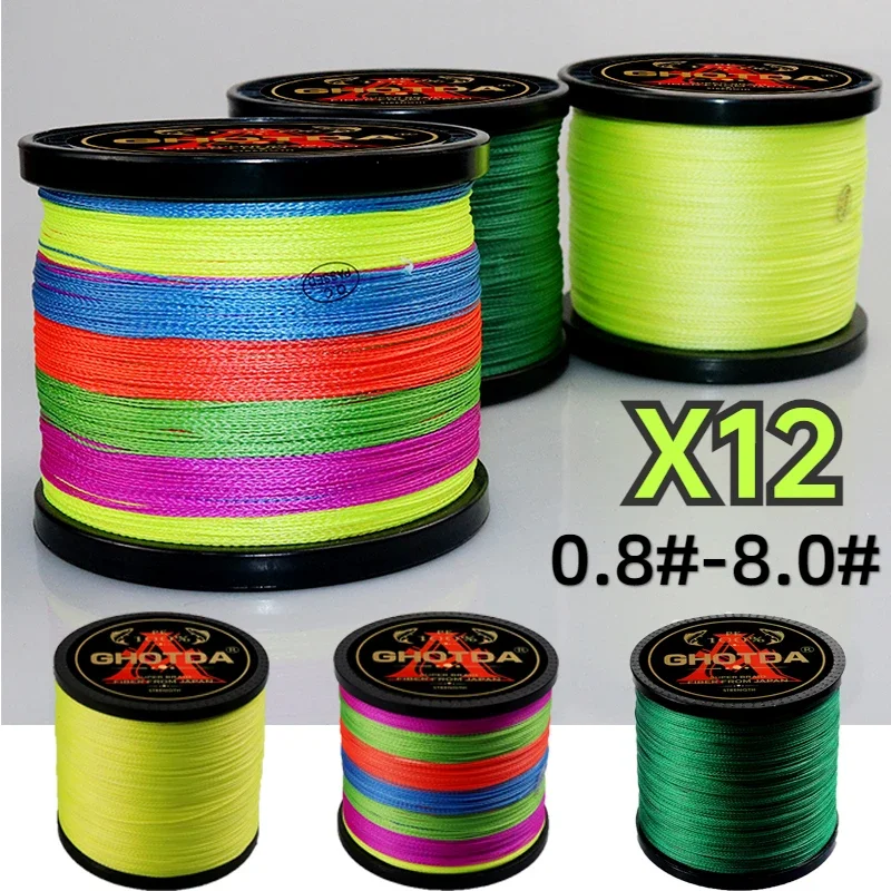 Sedal de Pesca de Mar/barco trenzado multifilamento, 1000M, 12 hebras, 25/30/39/50/65/77/92/120lb, accesorios de pesca de carpa