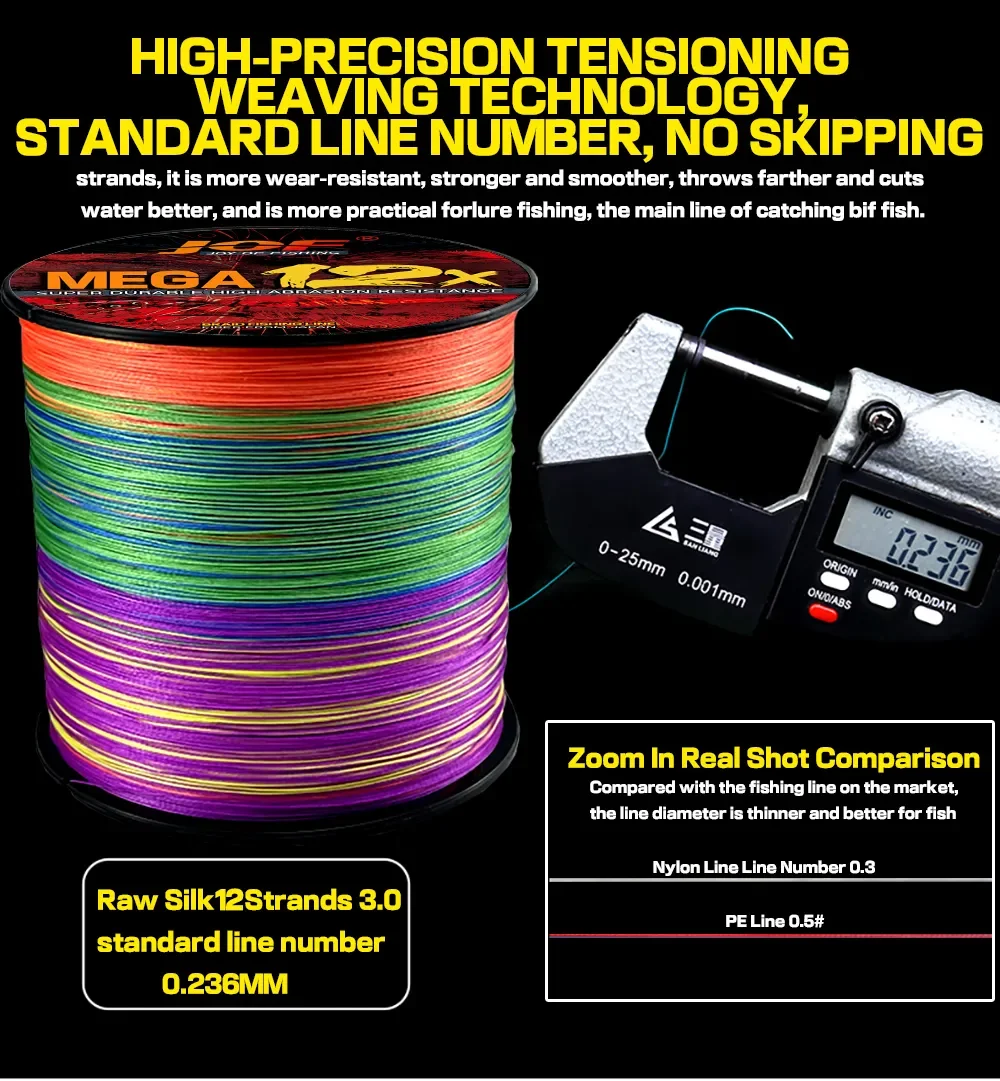 El sedal trenzado de 12 hebras es adecuado para todo tipo de pesca de alta intensidad, por lo que es perfecto para la pesca en el mar, la pesca en barcos y los peces ancla. Es particularmente ideal para pescar en lugares con estructuras submarinas complicadas o demasiados obstáculos, como áreas de hierba pesada, lugares con muchas piedras y muchas ramas.