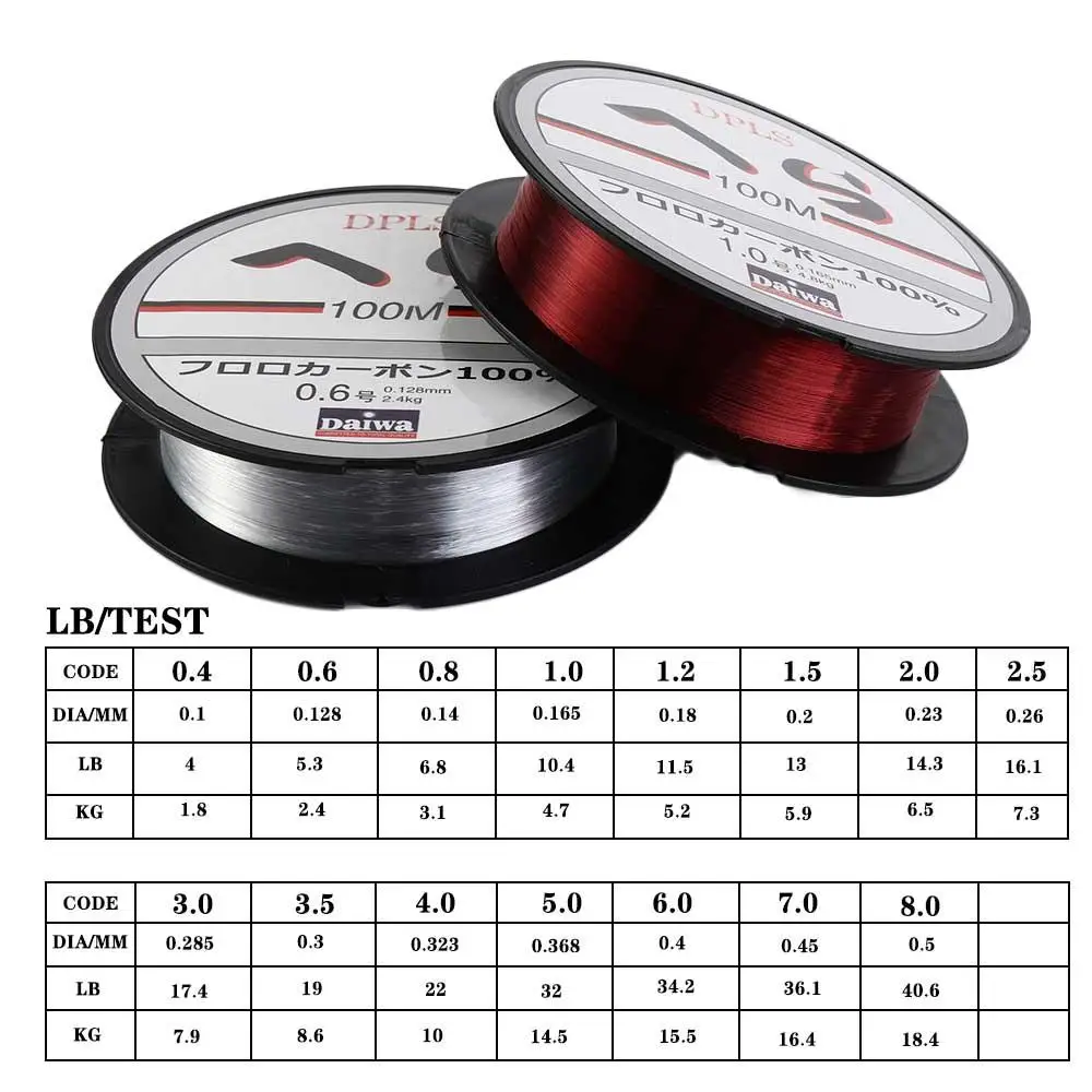 Type:Fishing line Material: Nylon Line Color: White/Red Length: 100m Weight :20-30G Package Includes:1pc Fishing line Line Number Diameter Test Line Number 0.6# 0.12mm 2.4KG Line Number 1.0# 0.16mm 3.5KG Line Number 1.5# 0.20mm 5.0KG Line Number 2.5# 0.26mm 7.3KG Line Number 3.5# 0.30mm 8.6KG Line Number 4.5# 0.37mm 14.5KG Line Number 6.0# 0.40mm 15.5KG Line Number 8.0# 0.47mm 18.4KG Notes: Due to manual measurement, please allow a difference of 1-2 cm. Due to many factors such as display brightness and light intensity, the actual color of this product may be slightly different from the picture displayed on the website.