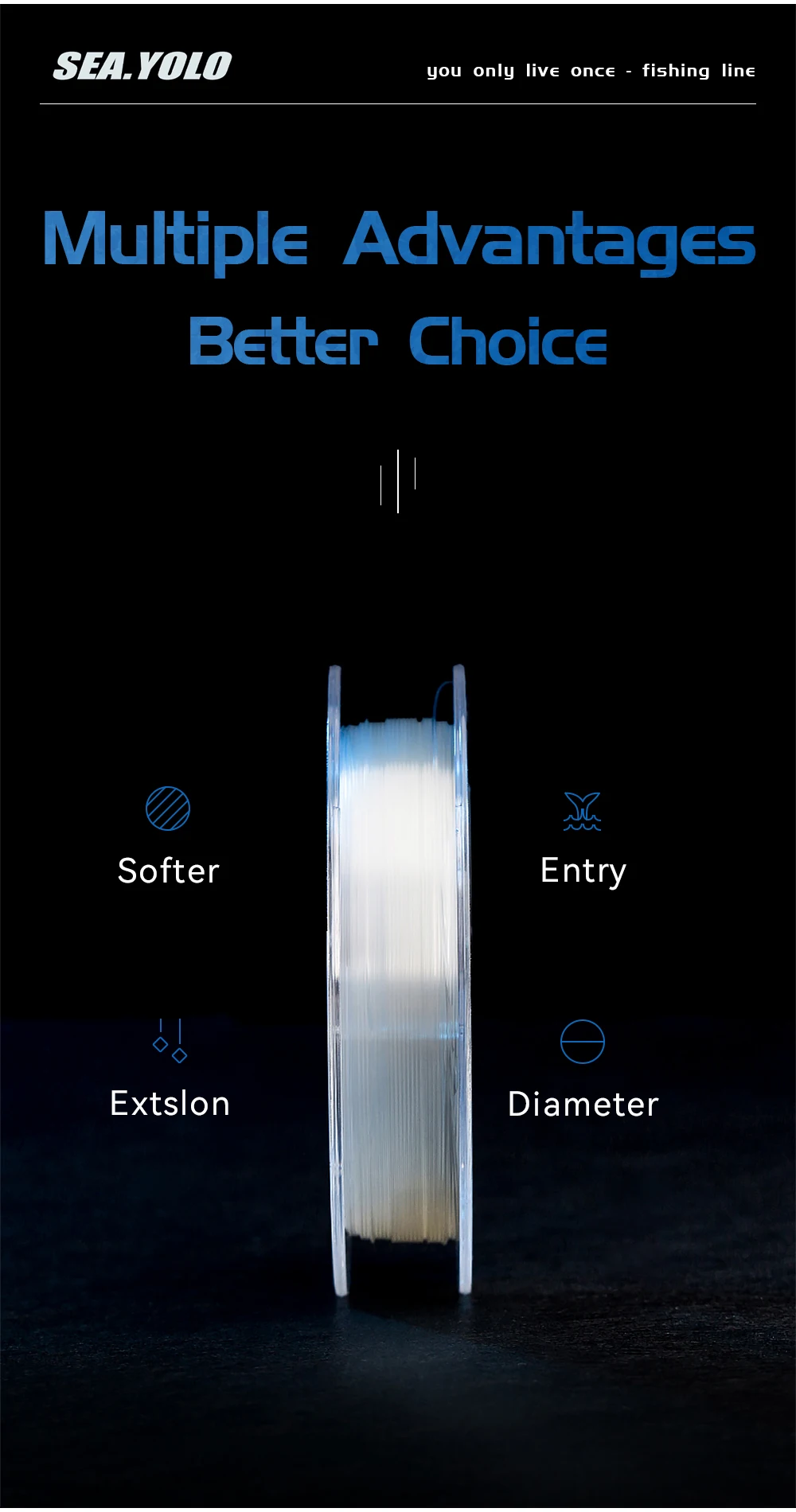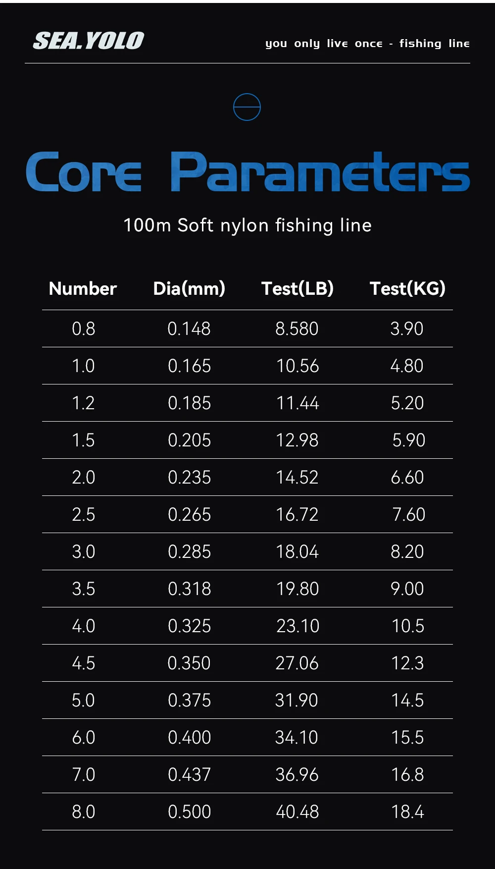 Sedal de pesca de nailon con fuerza de tracción superfuerte, sedal de 100m, 0.148-0,5mm, 8,58-40,48 lb, Yolo