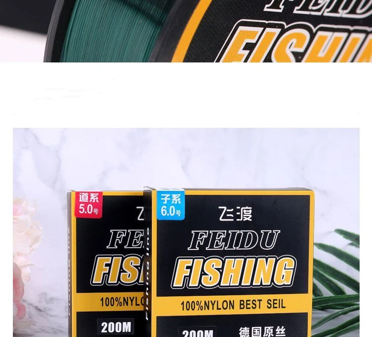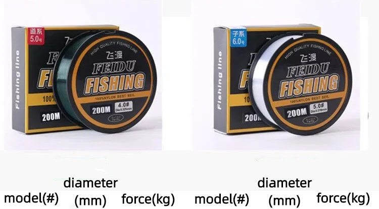 DescripciónNombre del producto: sedalMaterial: nailon Tipo: Mainline, tippet Longitud: 200mPaquete: 2 piezasCaracterísticas:1. Calidad de pesca profesional, fuerte y duradera.2. Ligero y resistente a la absorción de agua.