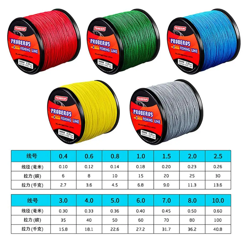 Línea de pesca Pe de 300m y 4 hebras, 8-80lb, líneas trenzadas Súper suaves de alta resistencia, adecuadas para agua de mar y agua dulce