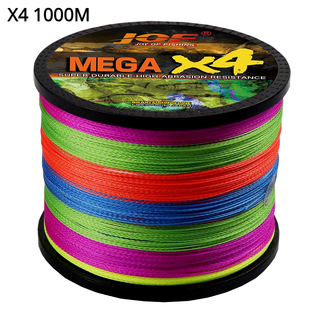 Sedal de pesca trenzado de 4 hebras, multifilamento suave PE de 1000M, superresistencia de 10 colores, 4,8-36,8 KG, pesca en el mar