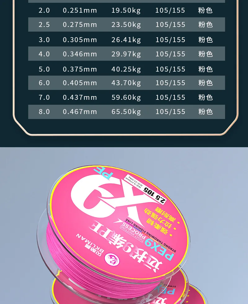 Sedal de Pesca trenzado, 9 hebras, 105M, 155M, PE, Multifilamento, Japón, Mosca de carpa, tejido de agua salada, Pesca extrema