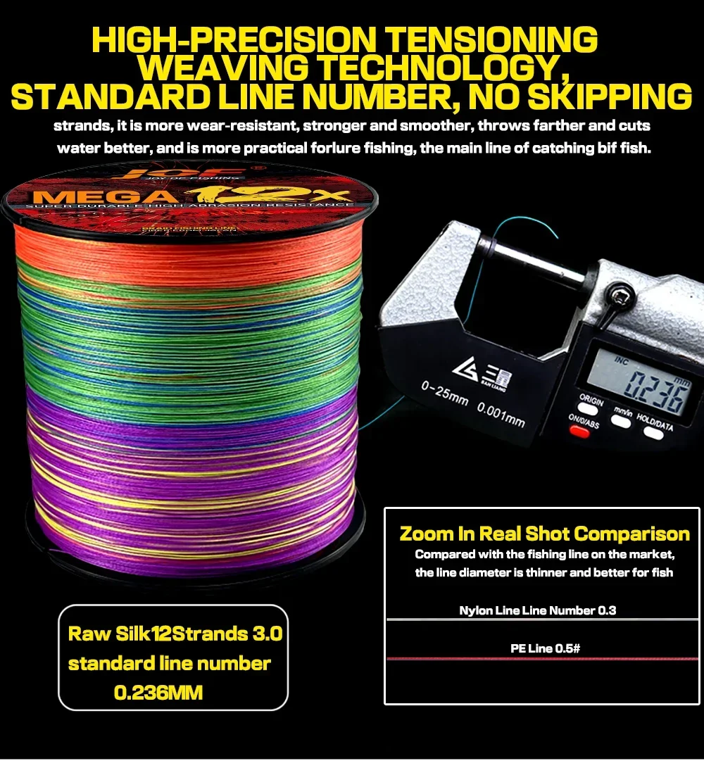 1. Sedal trenzado X12 de alta calidad, más fuerte y duradero, muy adecuado para la pesca en el mar y peces grandes.