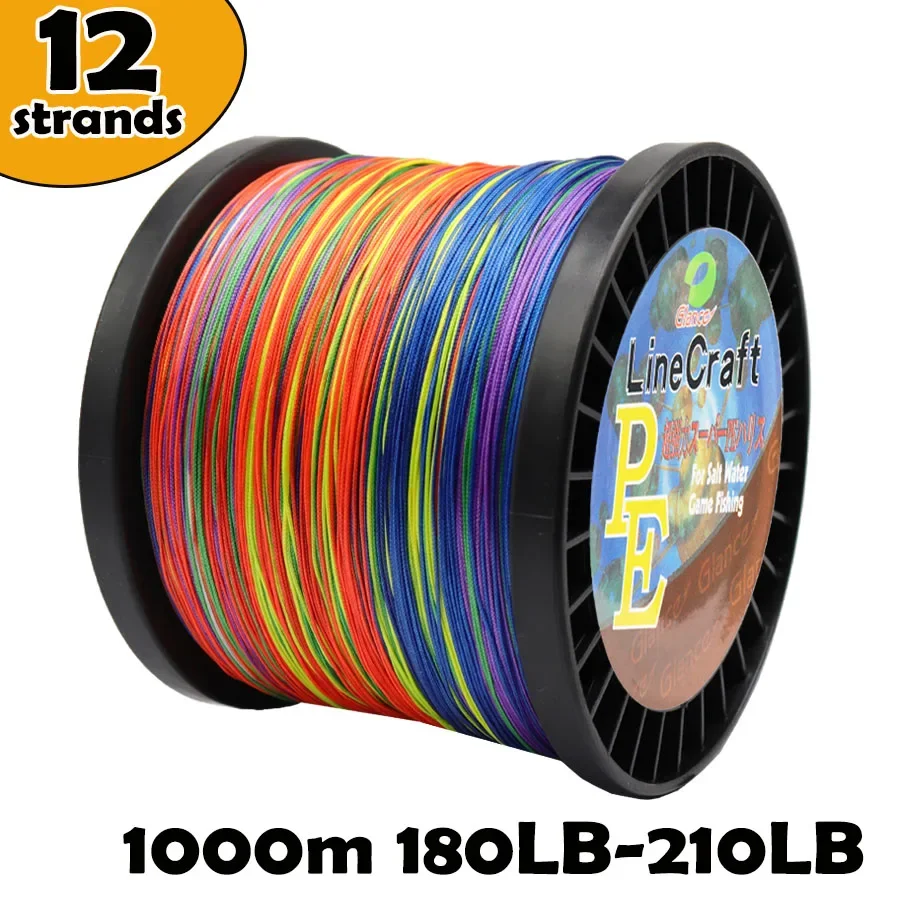 Línea de Pesca trenzada de 12 hebras 1000M Pesca carpa multifilamento pesca PE línea agua salada 180-210LB línea de señuelo