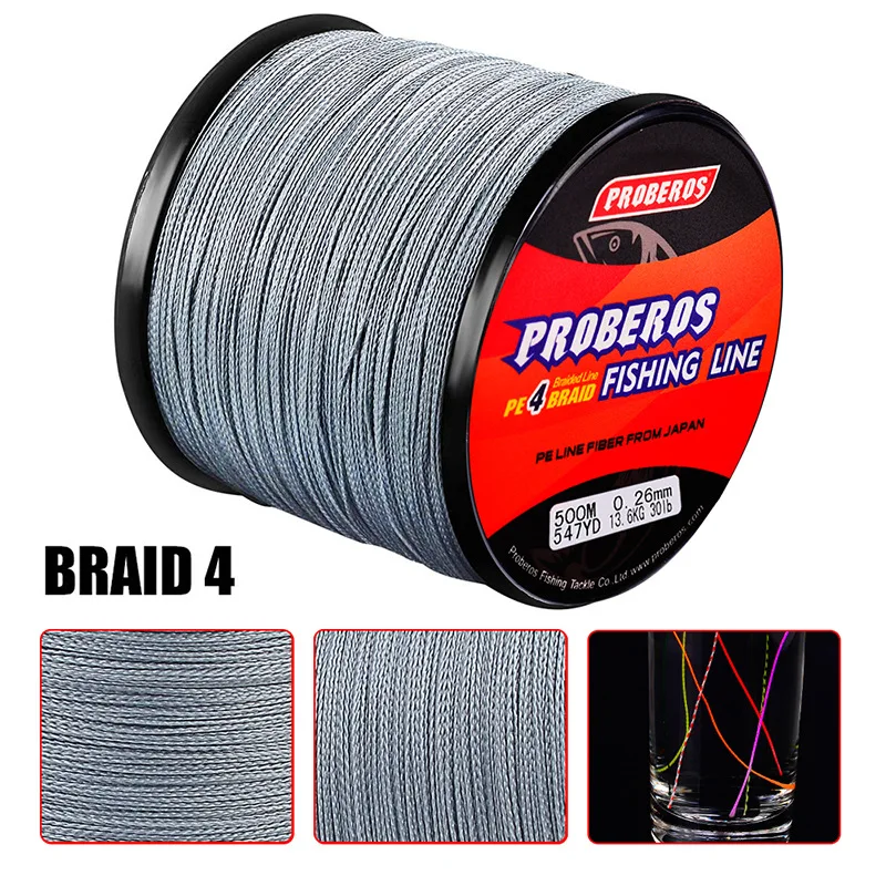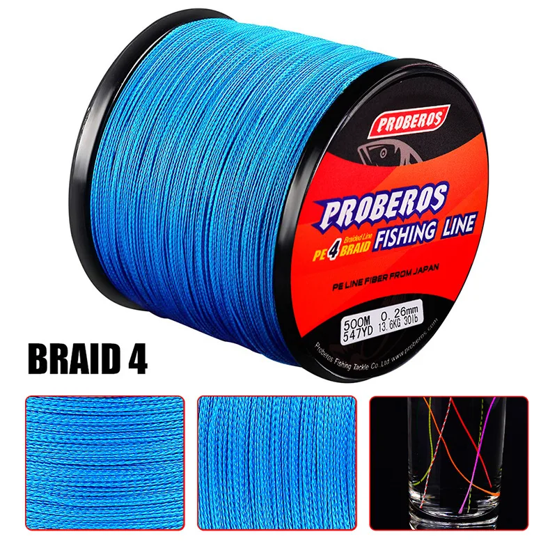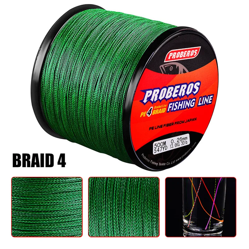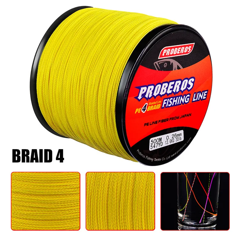 Sedal trenzado de 4 hebras para pesca en el océano, multifilamento japonés de 500m, 6lb-100lb, color sólido, superfuerte