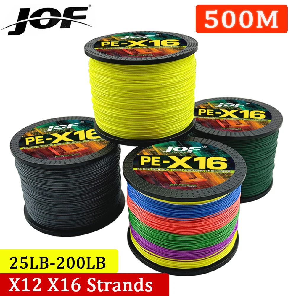Línea de Pesca trenzada JOF X16/X12 500m Drag 25-200LB PE línea para agua dulce agua salada accesorios de Pesca