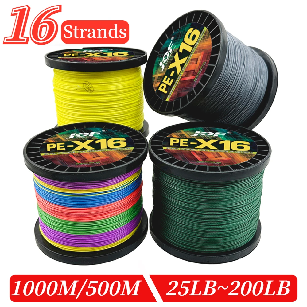 Hilo de pescar trenzado, 16 hebras, 500M, 1000M, X16, alambre trenzado de pesca de carpa, tiro largo, PE, superpotencia, multifilamento, 25LB ~ 200LB, Pesca