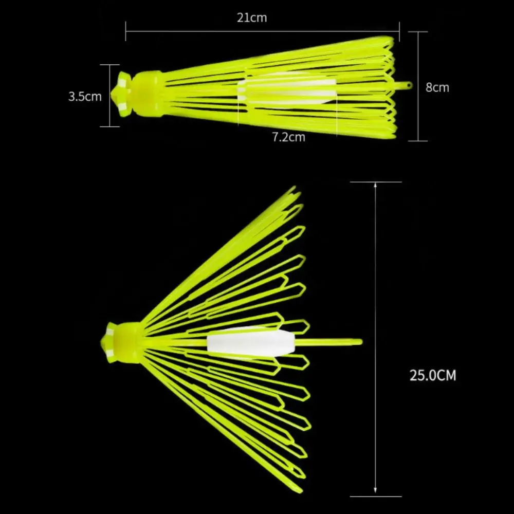 Nombre del producto: flotadores de pesca automáticos Material del sensor: plástico Colores: rojo/amarillo Tamaño: 21*3,5 cm (8,27*1.38in) Peso: 60,5G Embalaje: 1 sensor automático de flotadores de pesca. Especificaciones: dispositivo automático de colisión con agua. Agujero de línea suave. Alta Tasa de impacto y fuerte Manejo. Peso ligero y baja resistencia. El material plástico no absorbe el agua duradero y preciso. Aviso: 1. Debido a la diferencia de luz y pantalla, El color puede ser ligeramente diferente al de las imágenes. 2. Permita diferencias de 0,5-2 cm (0,20-0,79 pulgadas) debido a la medición manual.